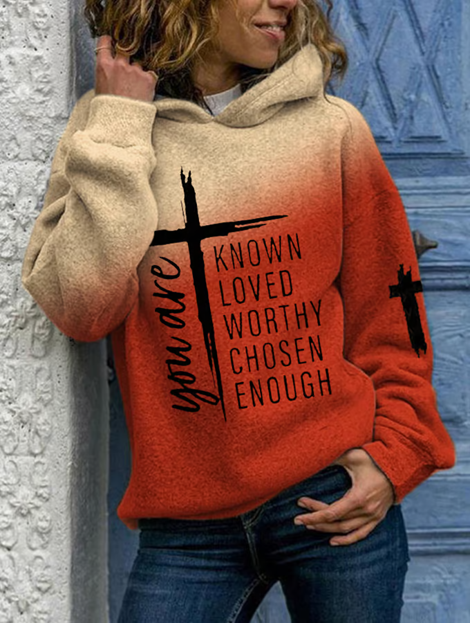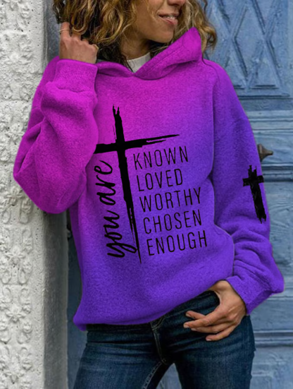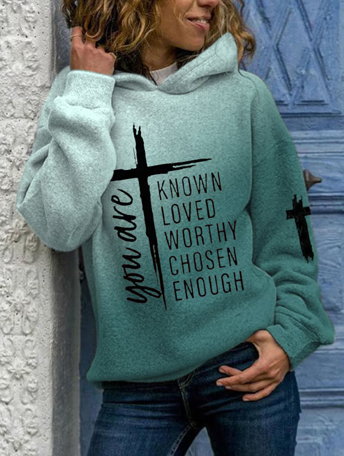 Women's You Are Known, Loved, Worthy, Chosen, Enough Print Casual Hoodie
