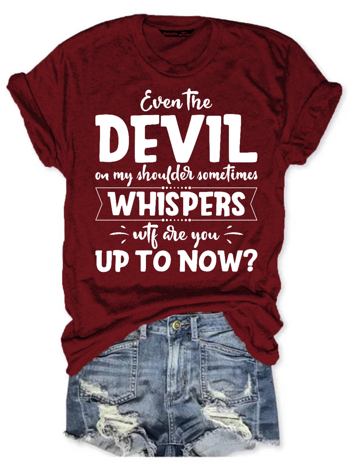 Womens Even The Devil On My Shoulder Sometimes Whispers WTF Are You Up To Now? Short Sleeve T-Shirt