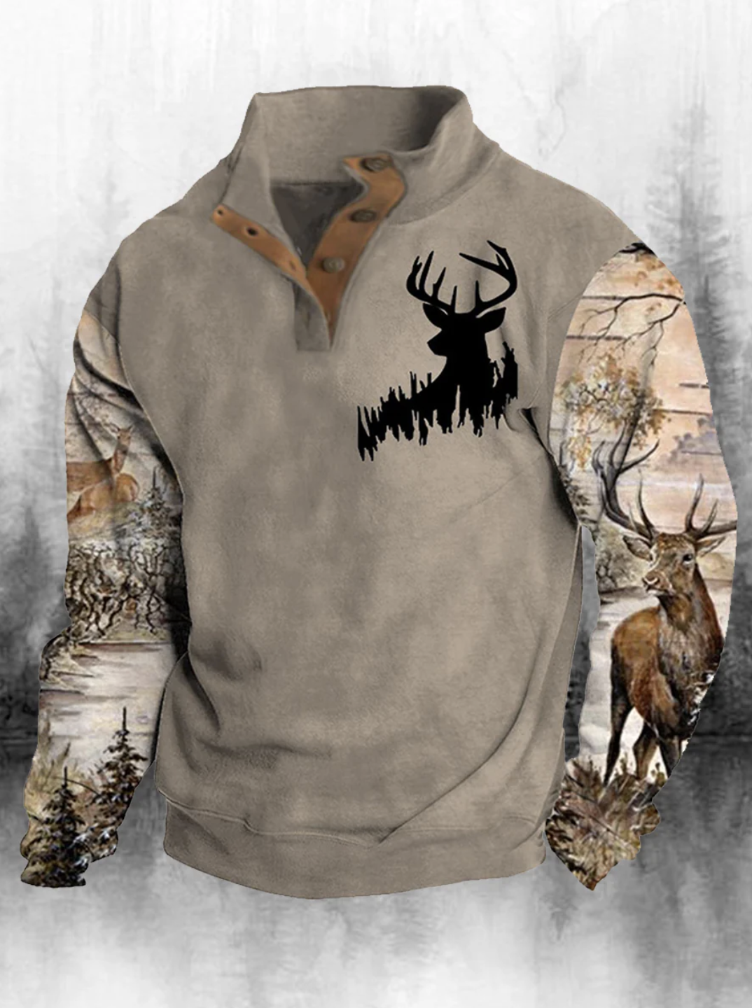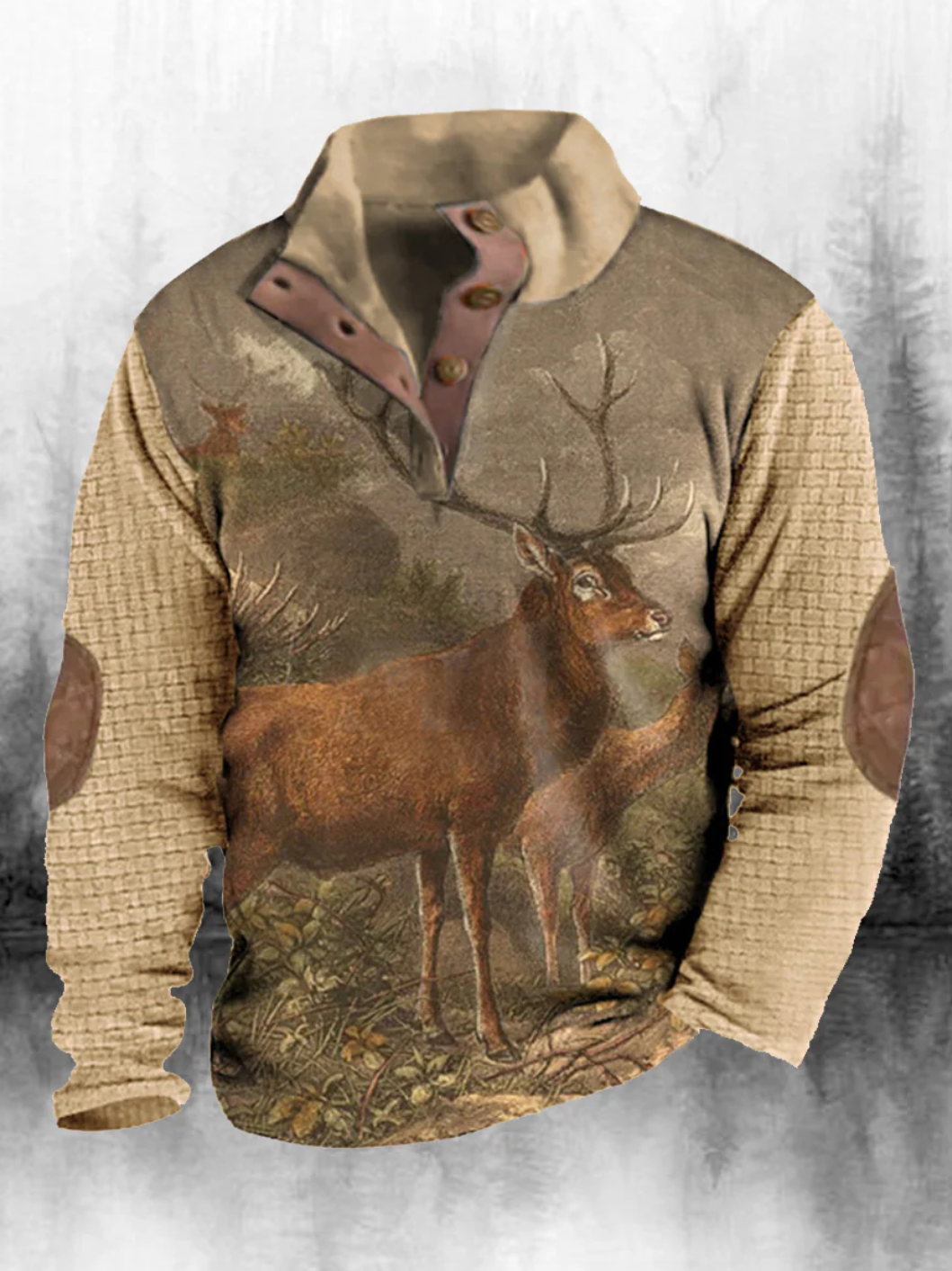 Men's retro Western print Text Letters Regular Fit Half Open Collar Western Style Sweatshirt