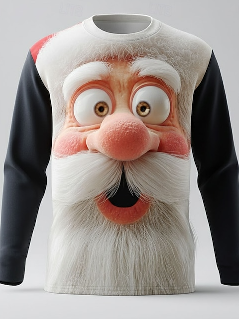 Men's Funny Santa Claus Christmas 3D Printed Loose Long Sleeve T-Shirt