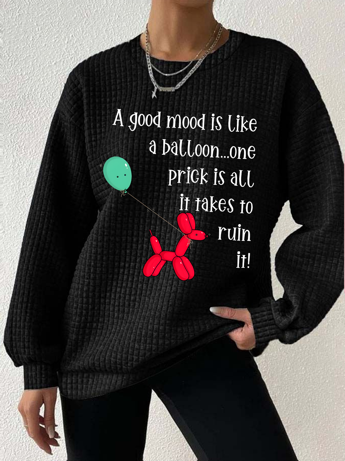 Women's 'A Good Mood Is Like A Balloon One Prick Is All It Takes To Ruin It' Waffle Sweatshirt