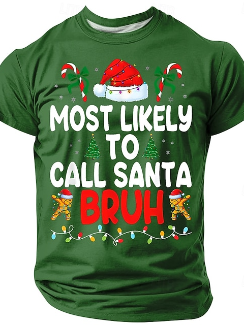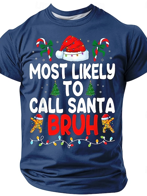 Christmas Funny 'Most Likely to Call Santa Bruh' Men's Short Sleeve Crewneck T-Shirt
