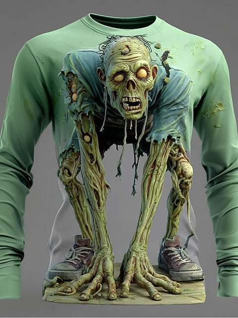 Men's Halloween Funny Skull 3D Print Loose Long Sleeve T-Shirt
