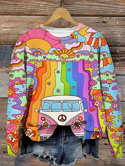 Peace Symbol Graffiti Painted Print Casual Sweatshirt