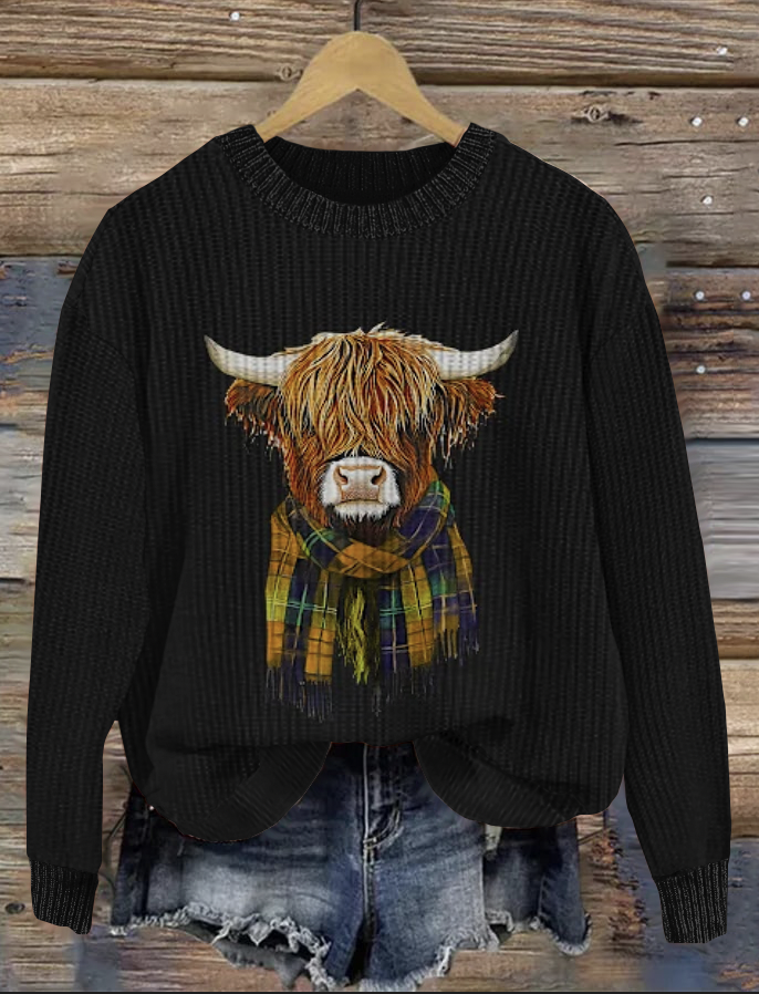 Scottish Cute Little Cow Round Neck Sweater