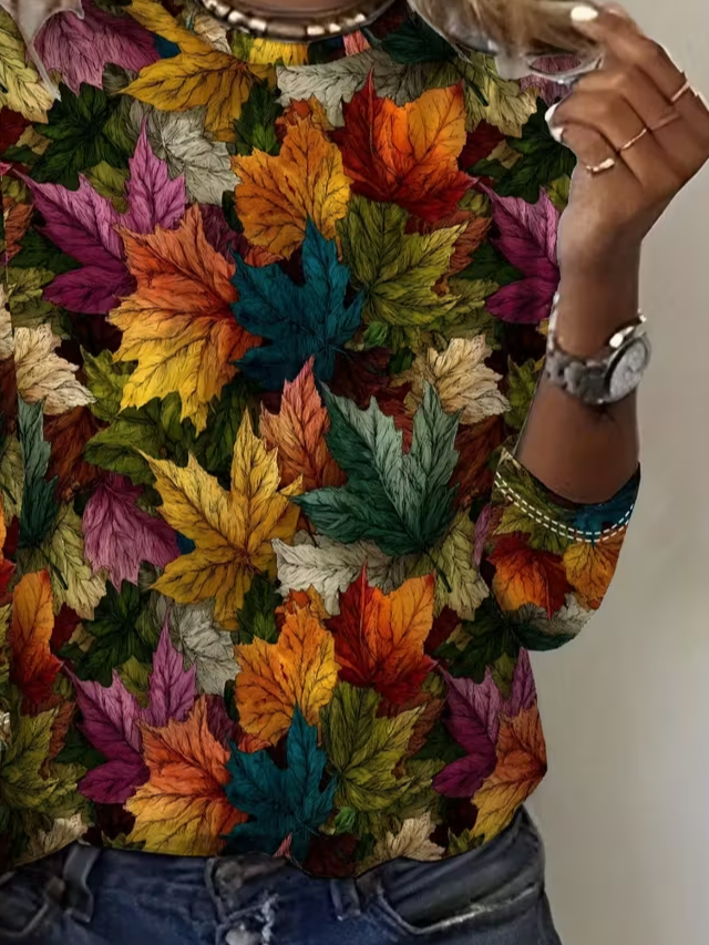 Women's Long Sleeve T-shirt Spring/Fall As Picture Maple Leaf Printing Jersey Crew Neck Daily Going Out Casual Top
