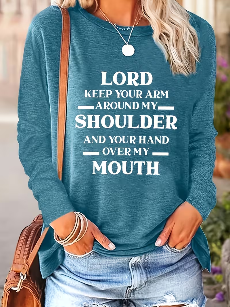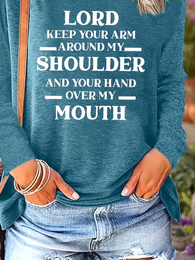 Women's Long Sleeve T-shirt Spring/Fall Blue Text Letters Printing Jersey Crew Neck Daily Going Out Casual Top