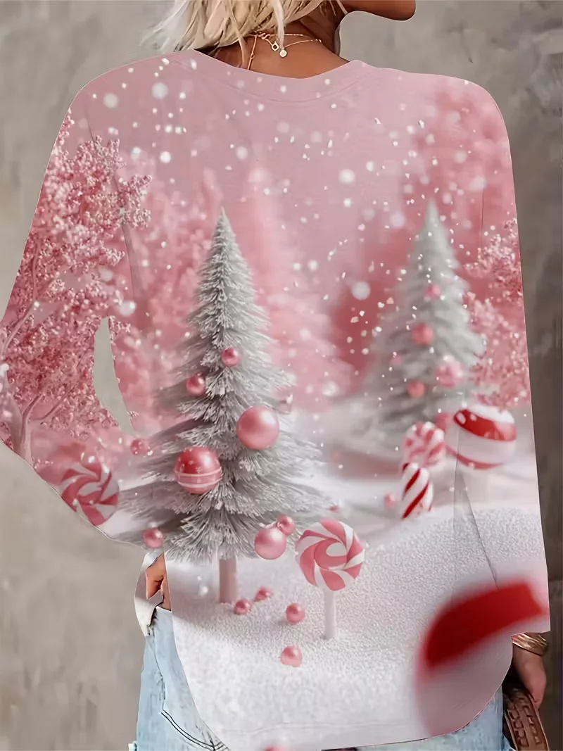 Women's Long Sleeve T-shirt Spring/Fall Pink Christmas Printing Jersey V Neck Daily Going Out Casual Top
