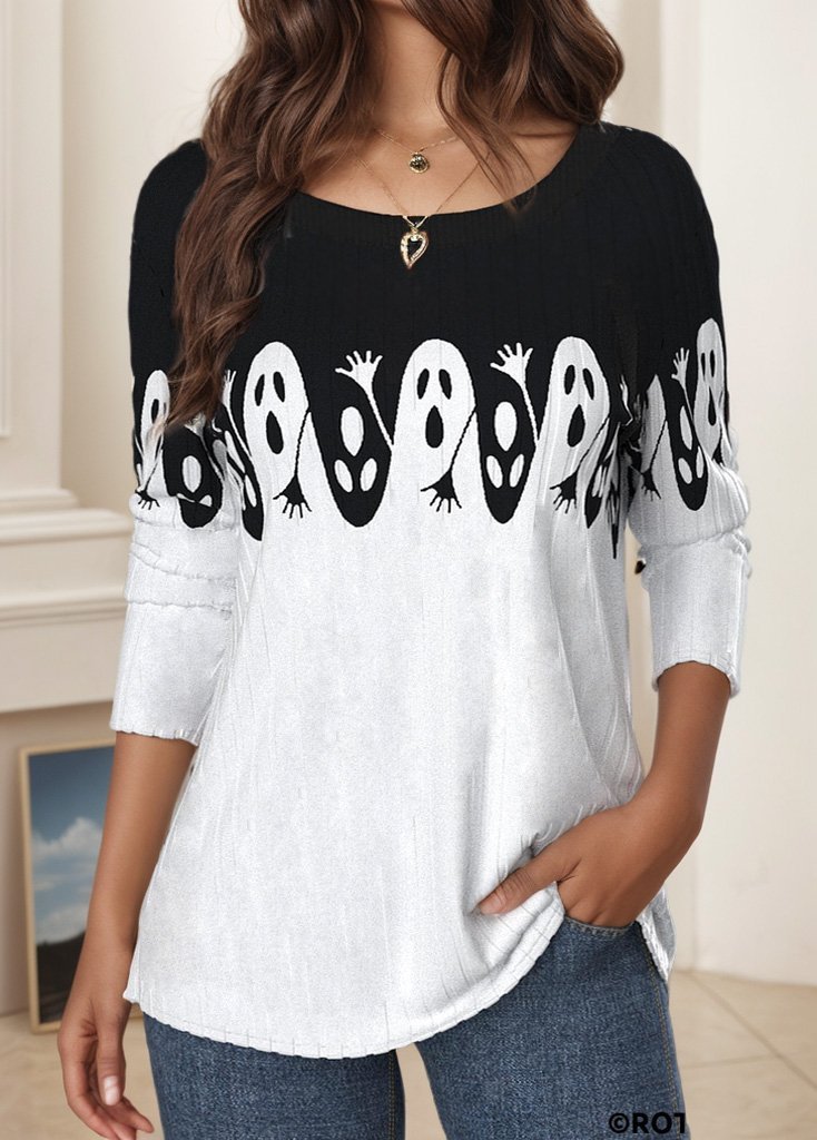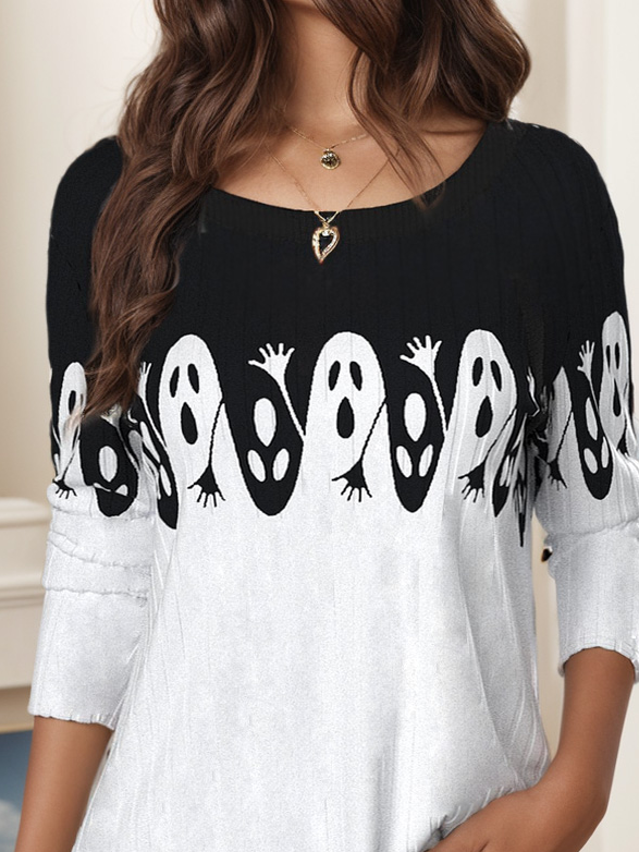 Women's Long Sleeve T-shirt Spring/Fall White Halloween Jersey Crew Neck Daily Going Out Casual Top