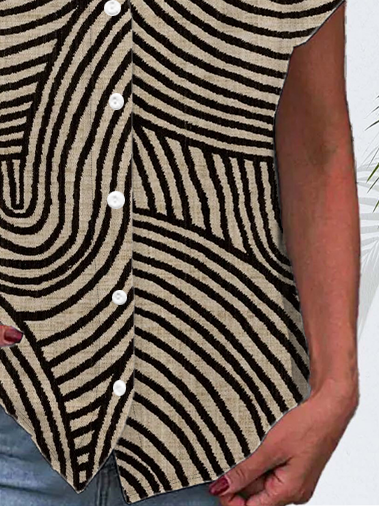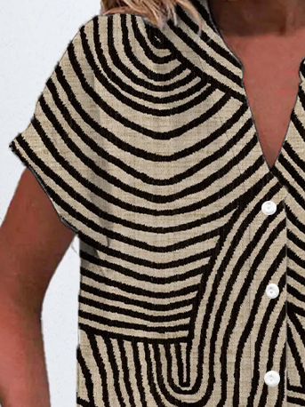 Women's Short Sleeve Shirt Summer As Picture Striped Printing V Neck Daily Going Out Casual Top