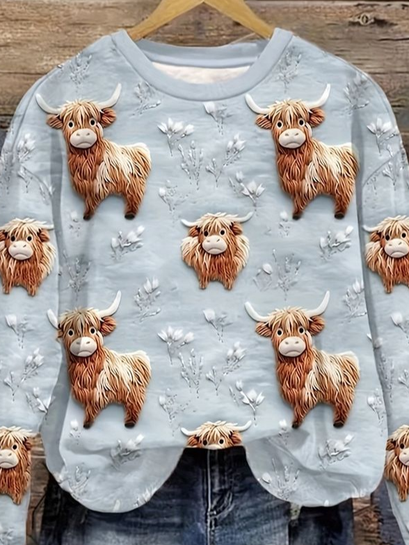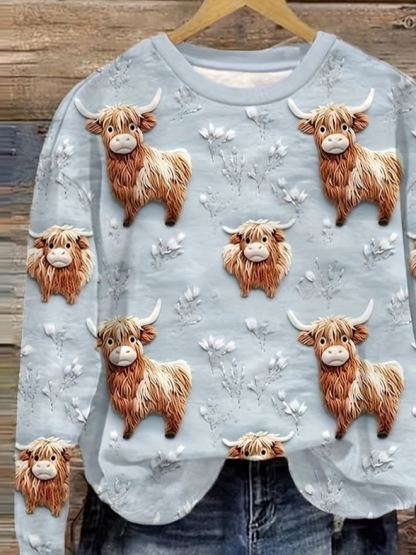 Women's Vintage Highland Cow Print Regular Fit Sweatshirt