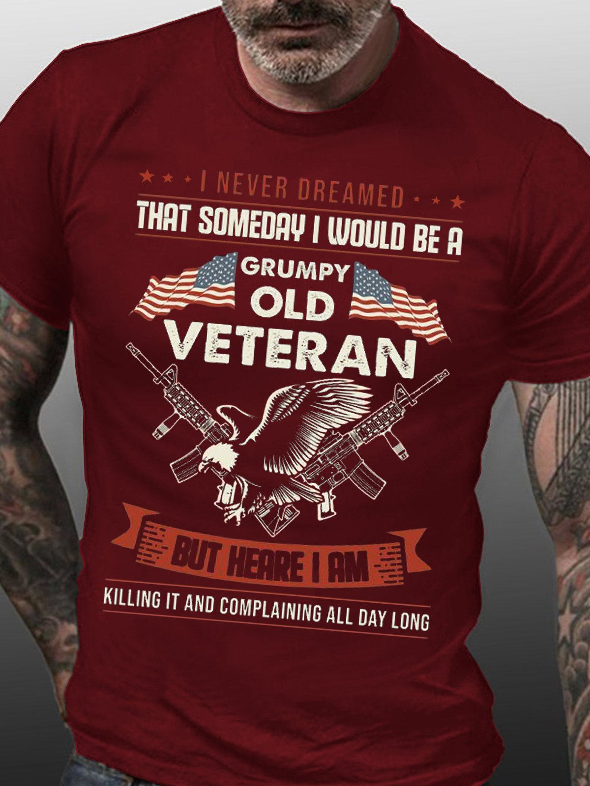 I Never Dreamed That Someday I Would Be A Grumpy Old Veteran Short Sleeve Vintage Crew Neck Short Sleeve T-Shirt