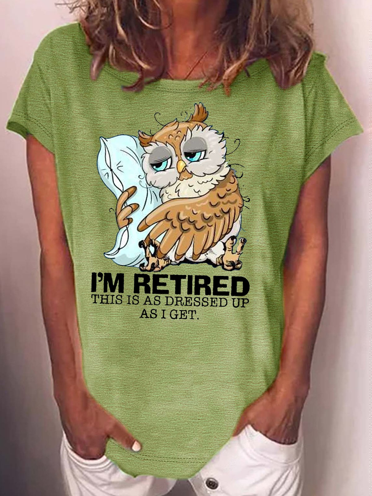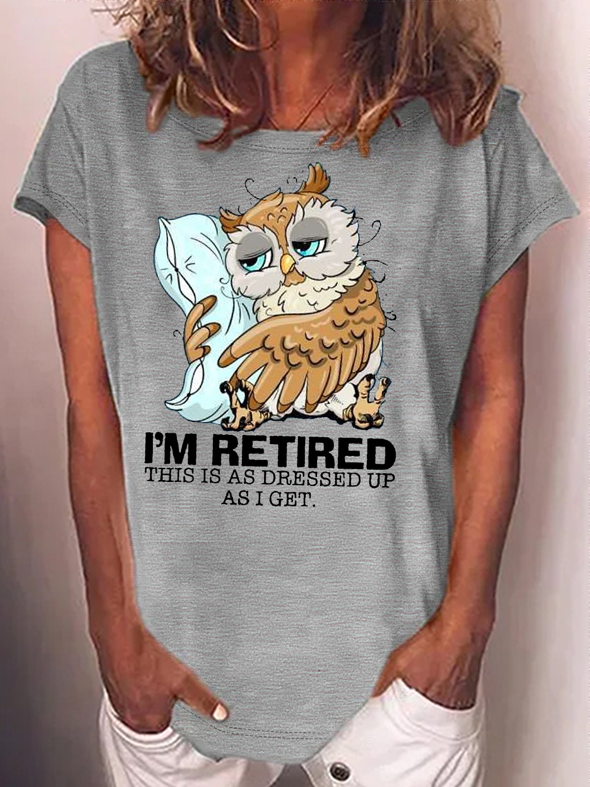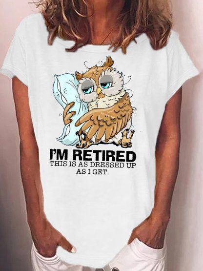 Women's I’m retired this is as dressed up as I get Sleepy owl retired Casual T-Shirt