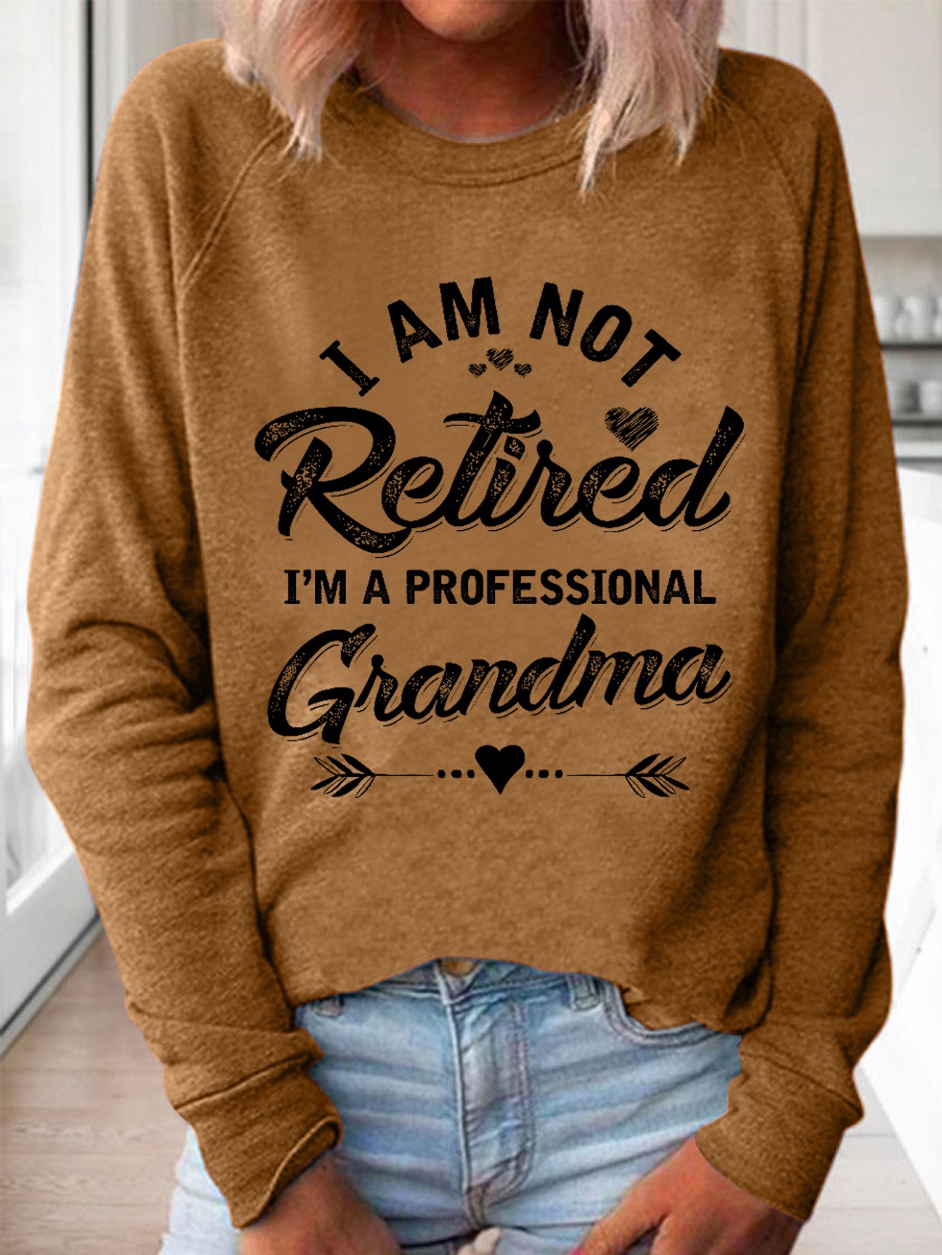 Funny Women I Am Not Retired I Am A Professional Grandma Simple Crew Neck Sweatshirt