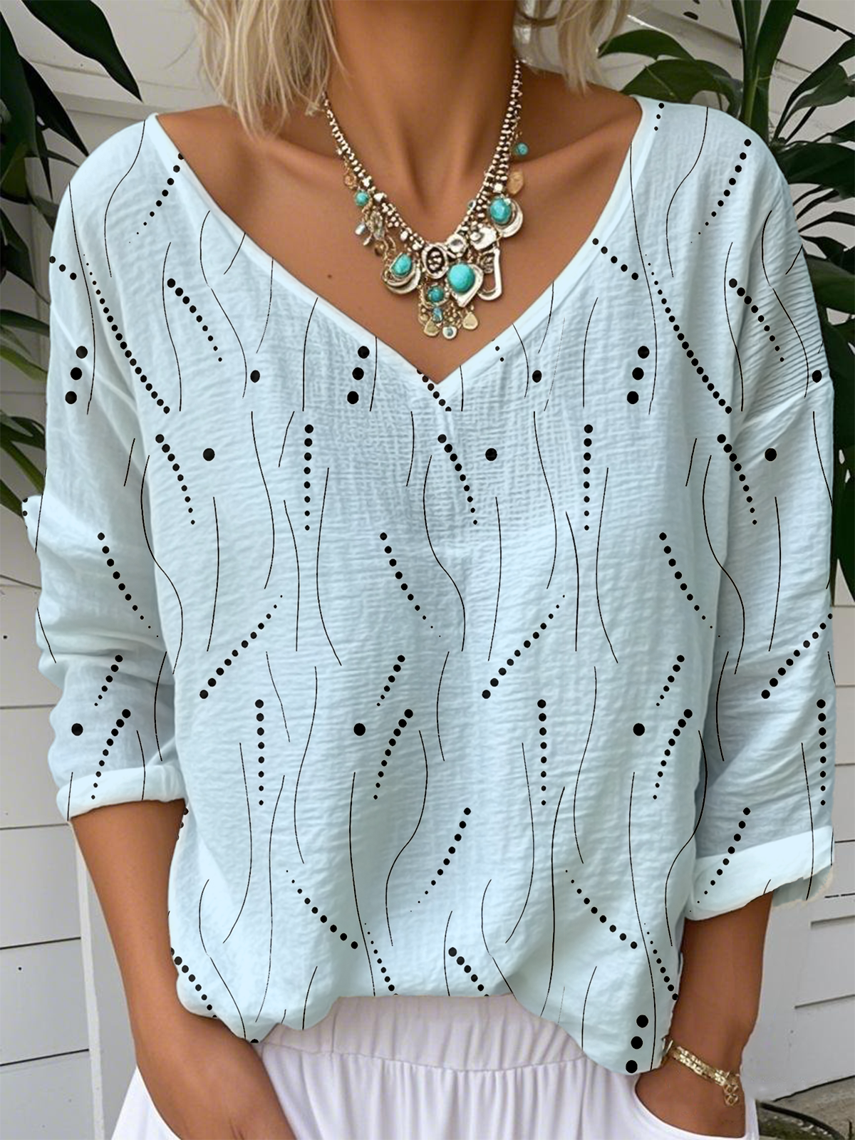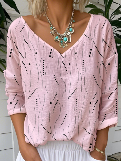 Print Casual V Neck Long Sleeve T-Shirt