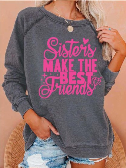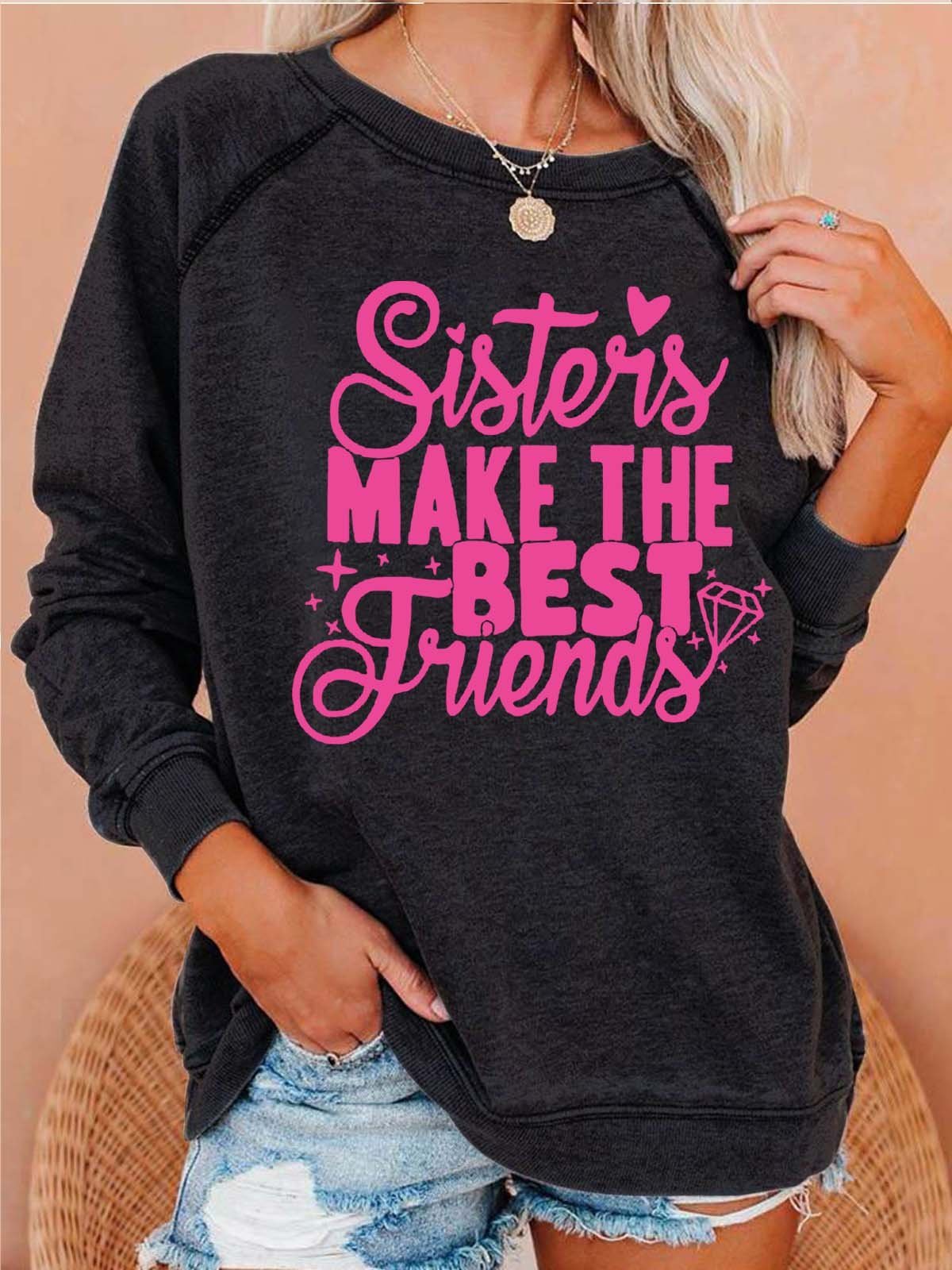 Women Sisters Make Me Best Friends Text Letters Casual Sweatshirt