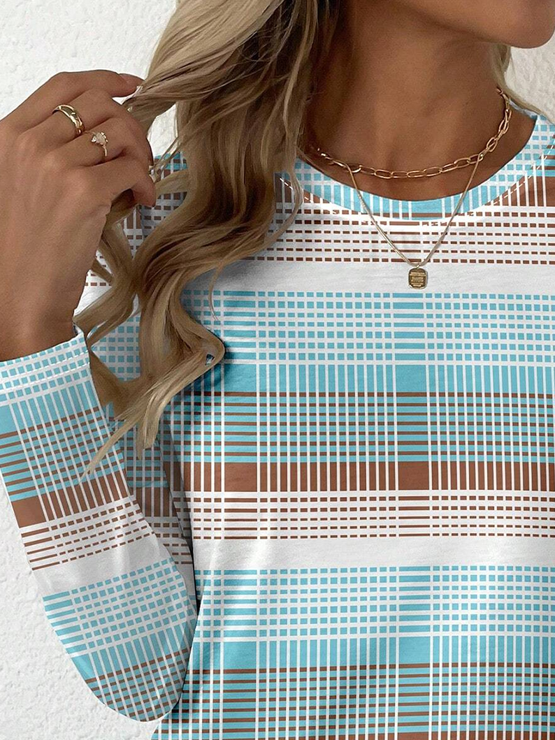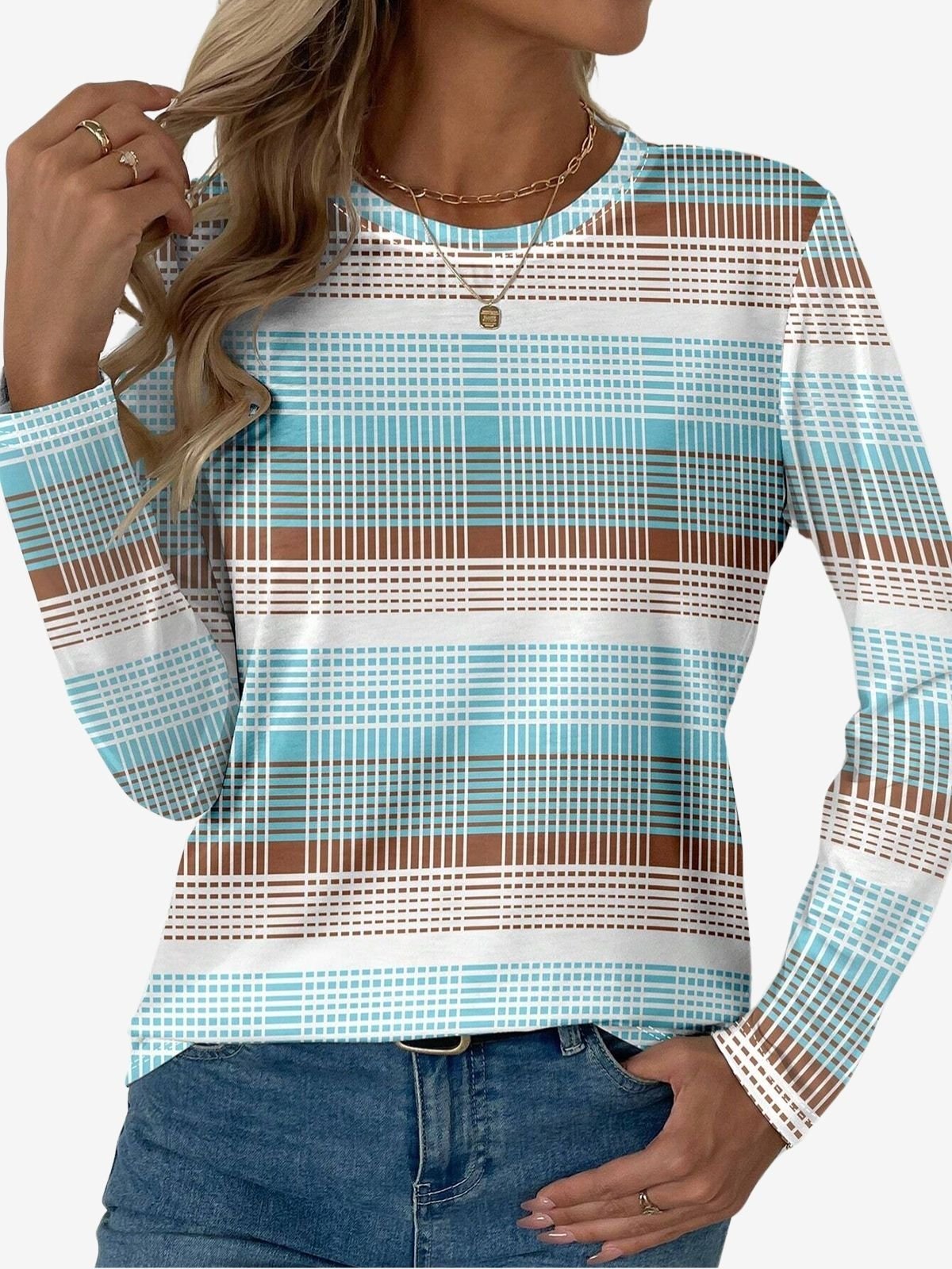 Women's Long Sleeve T-shirt Spring/Fall Blue Striped Jersey Crew Neck Daily Going Out Casual Top