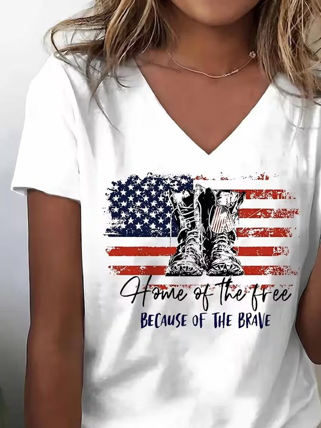 Women's Short Sleeve T-shirt Summer White Text Letters Jersey V Neck Holiday Going Out Casual Top