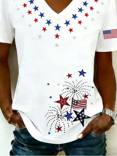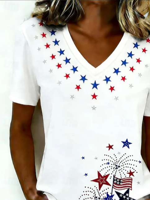 Women's USA 250th Anniversary Short Sleeve T-shirt Summer White America Flag Jersey V Neck Holiday Going Out Casual Top