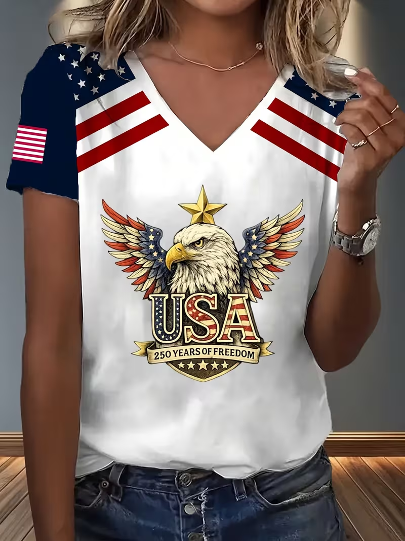 Women's USA 250th Anniversary Short Sleeve T-shirt Summer White Text Letters Jersey V Neck Holiday Going Out Casual Top
