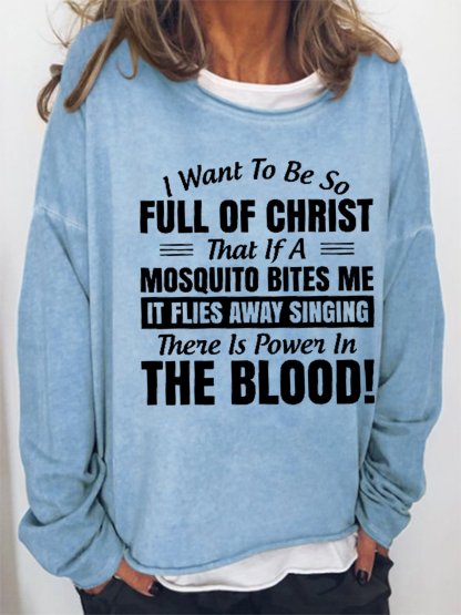Women Funny I Want to Be So Full Of Christ That Is A Mosquito Bites Me It Flies Away Singing There Is Power In The Blood Sweatshirt