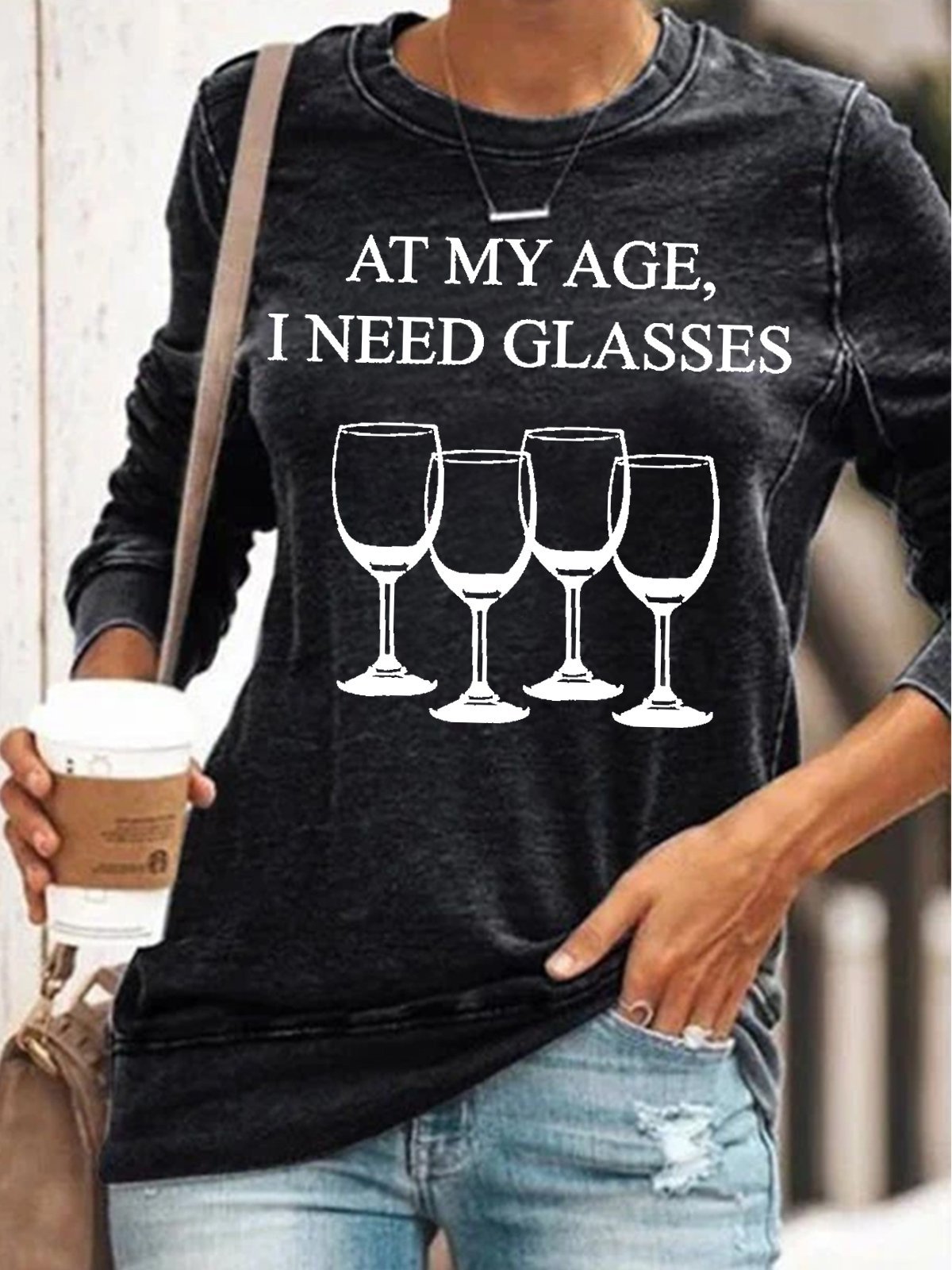 Womens At My Age I Need Glasses Funny Wine Sweatshirt
