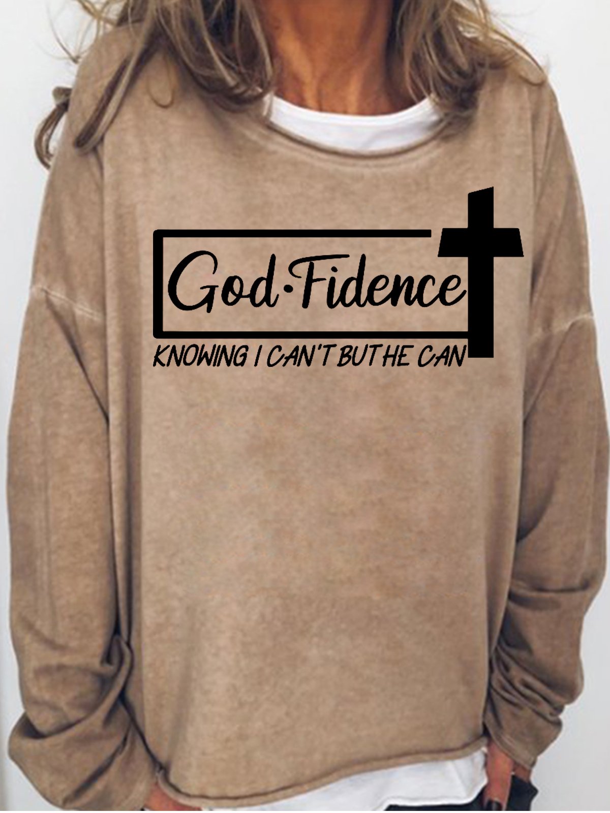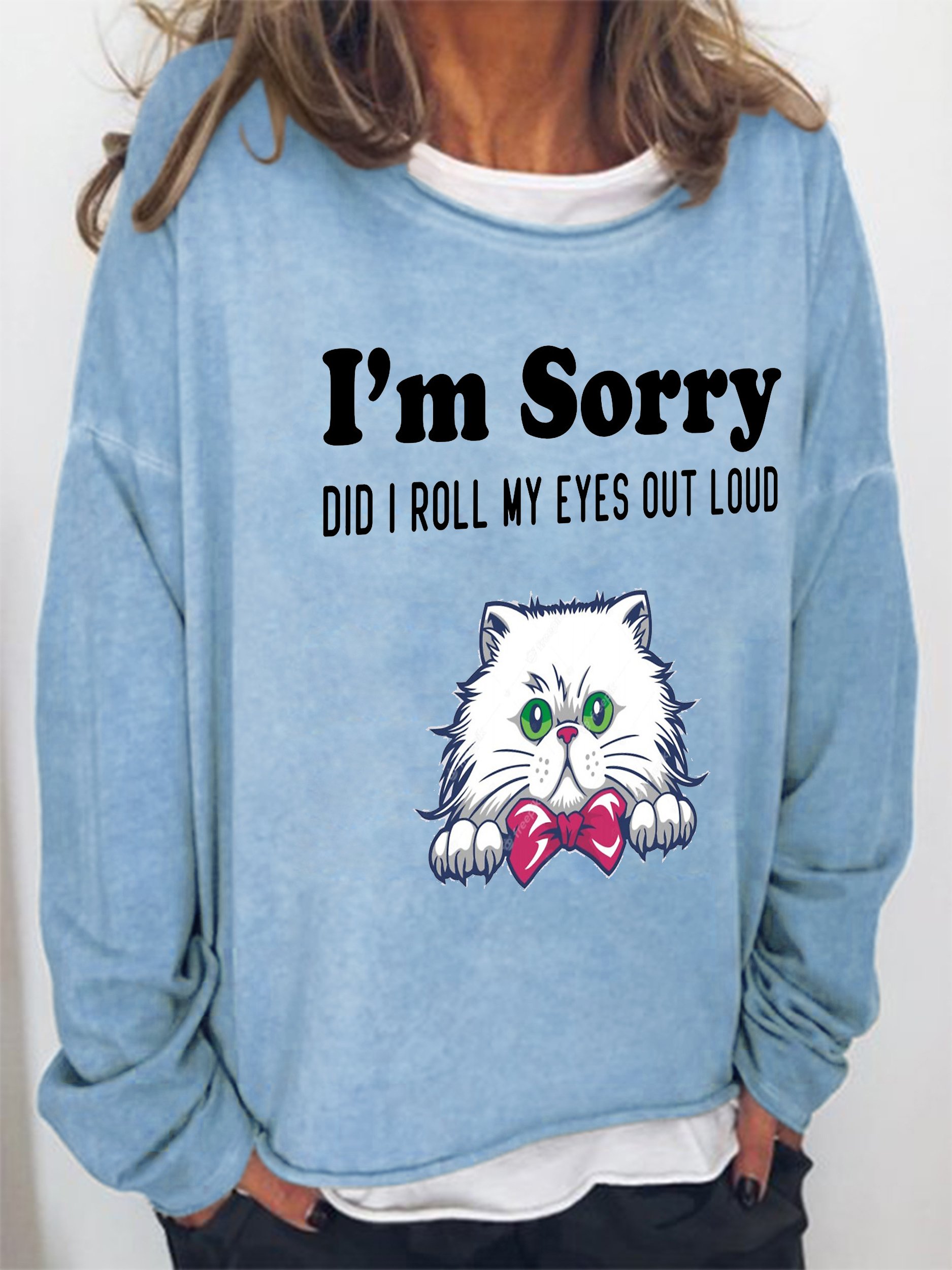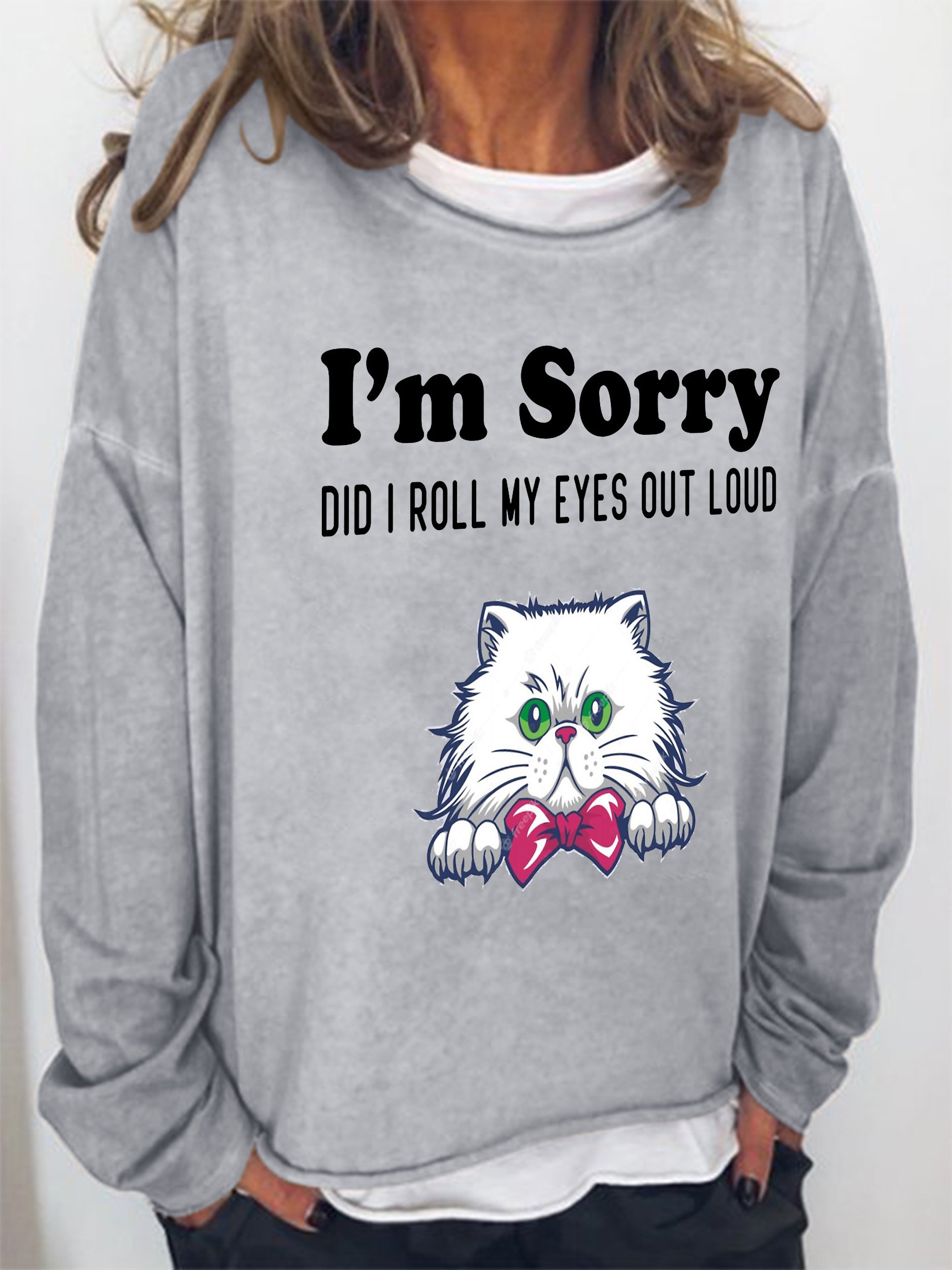 Funny text and cat print round neck long-sleeved Sweatshirts