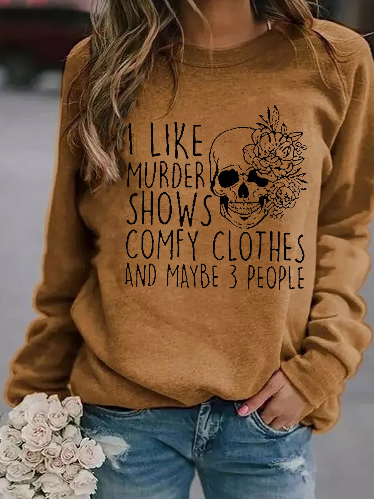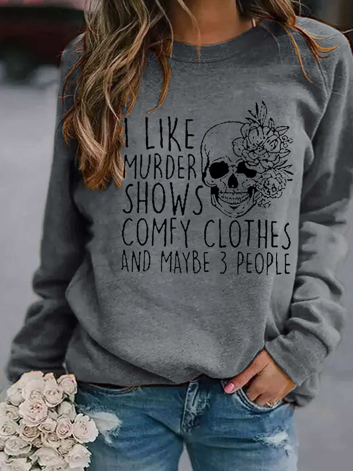 I Like Murder Shows Skull Funny Words Crew Neck Sweatshirt