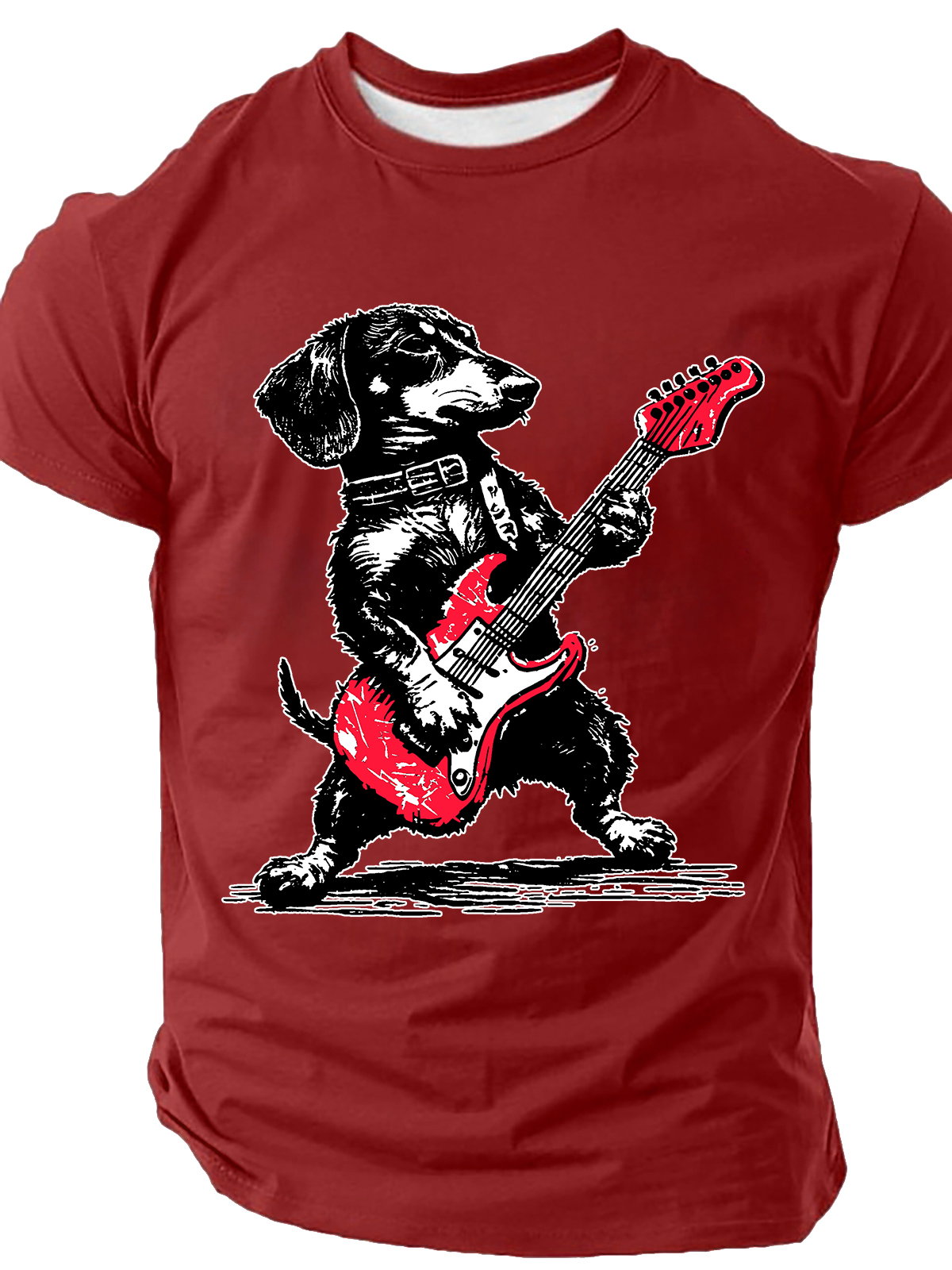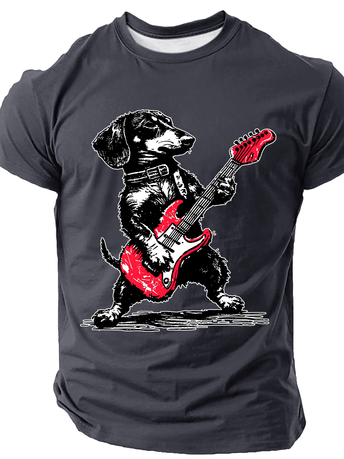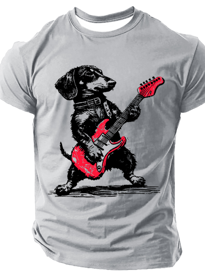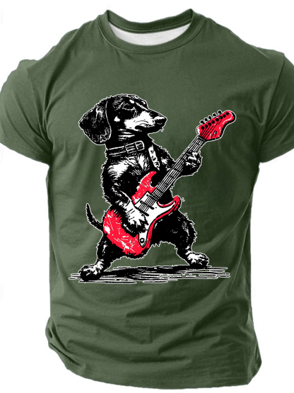 Dachshund Weenie Playing Guitar Print T-Shirt