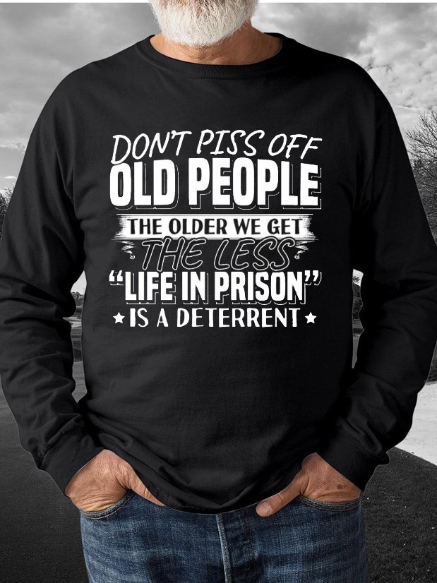 Don't piss off old people. Round neck long-sleeved cotton-blend sweatshirt