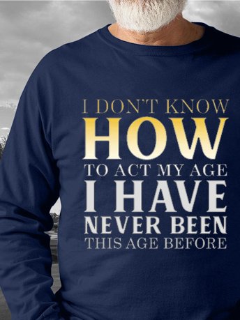 I don't know how to act my age,I have never been this age before.Round neck long-sleeved cotton-blend sweatshirt