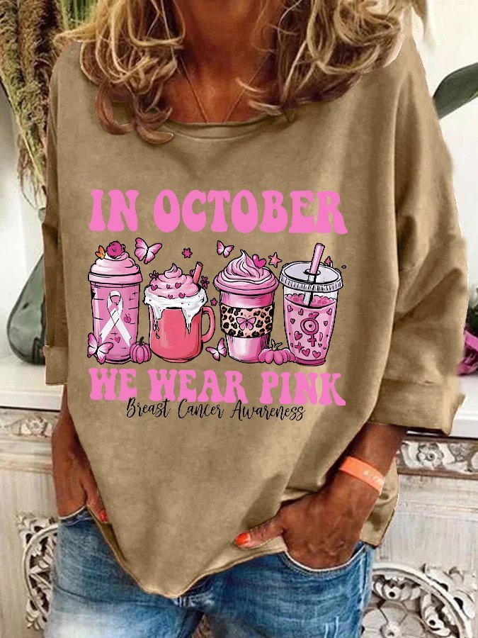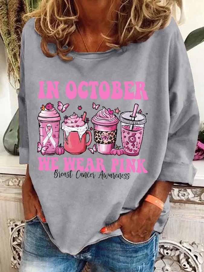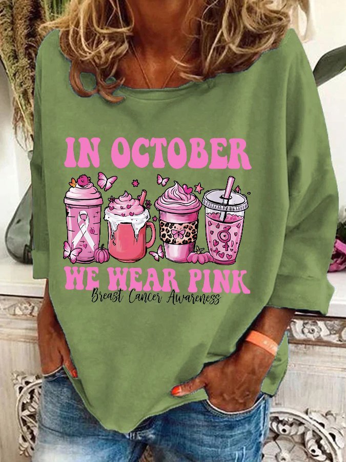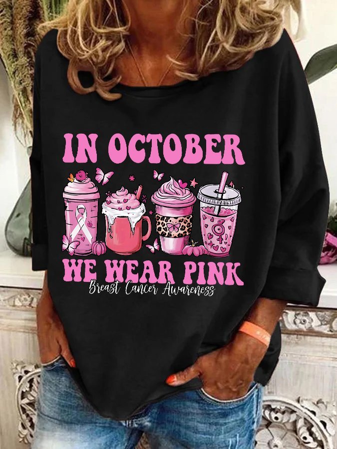 In October We Wear Pink Breast Cancer Awareness Casual Sweatshirt