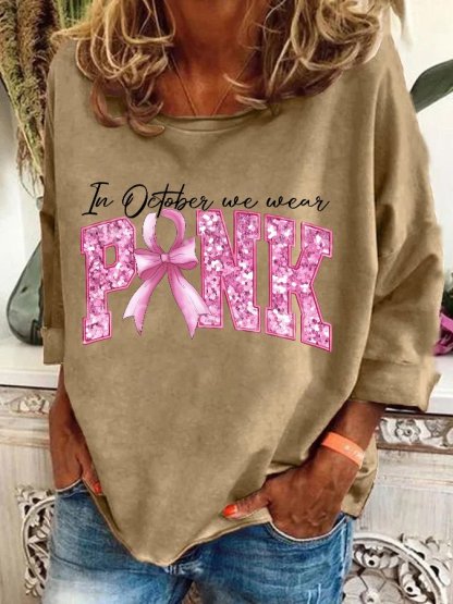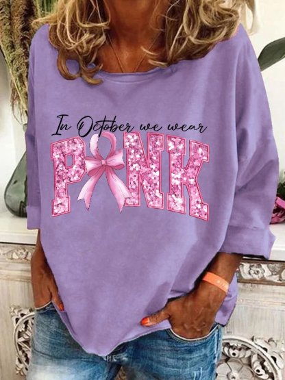 In October We Wear Pink Breast Cancer Awareness Casual Sweatshirt