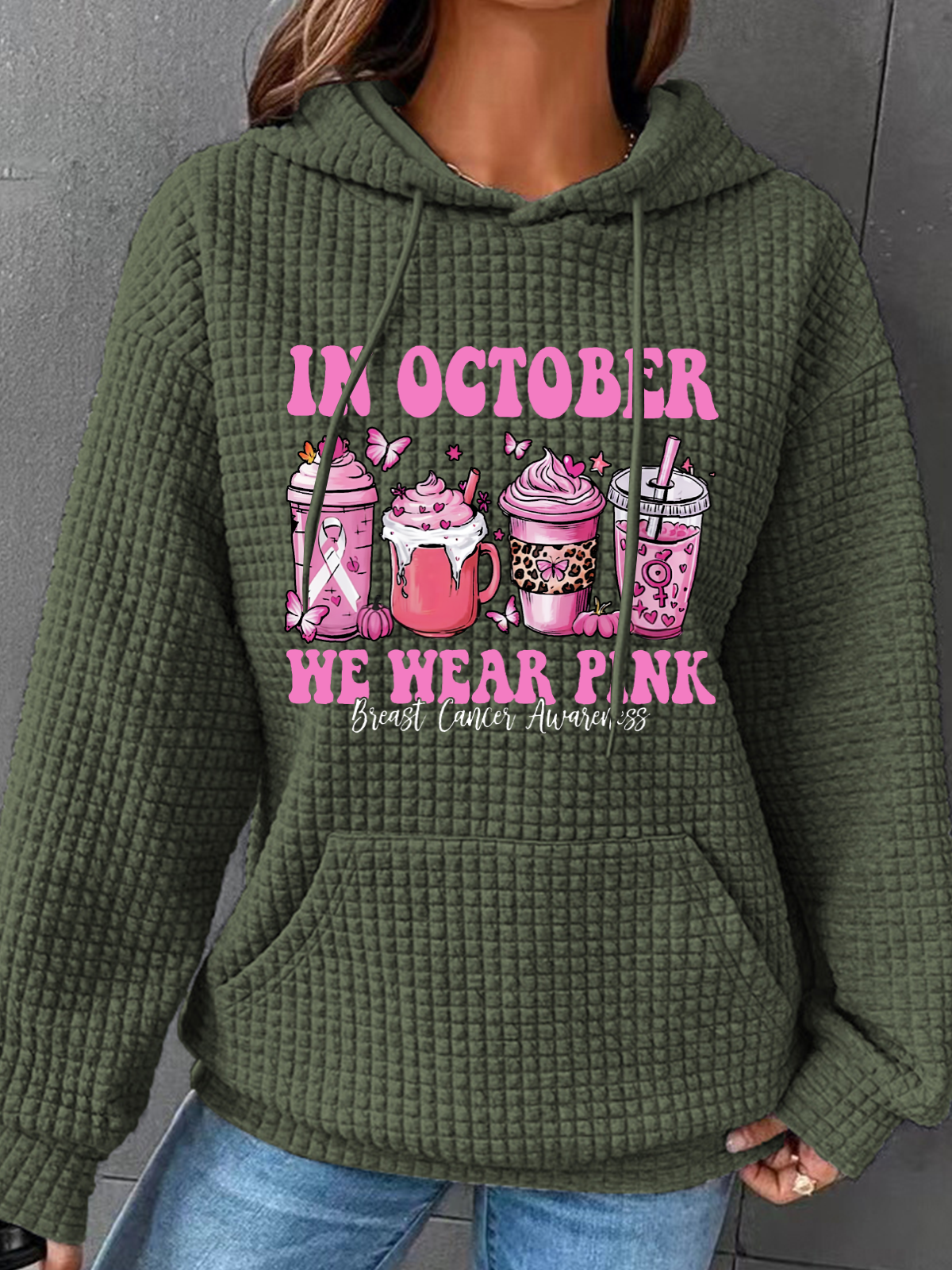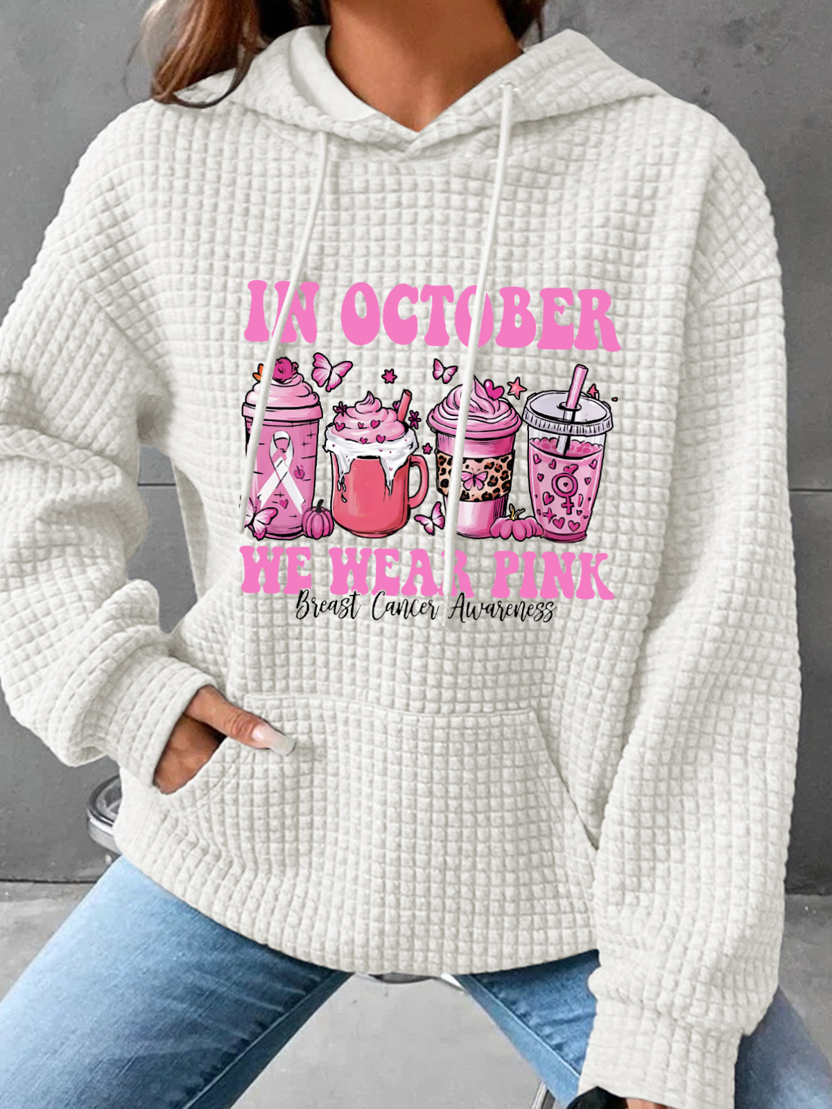 In October We Wear Pink Breast Cancer Awareness Simple Loose Hoodie