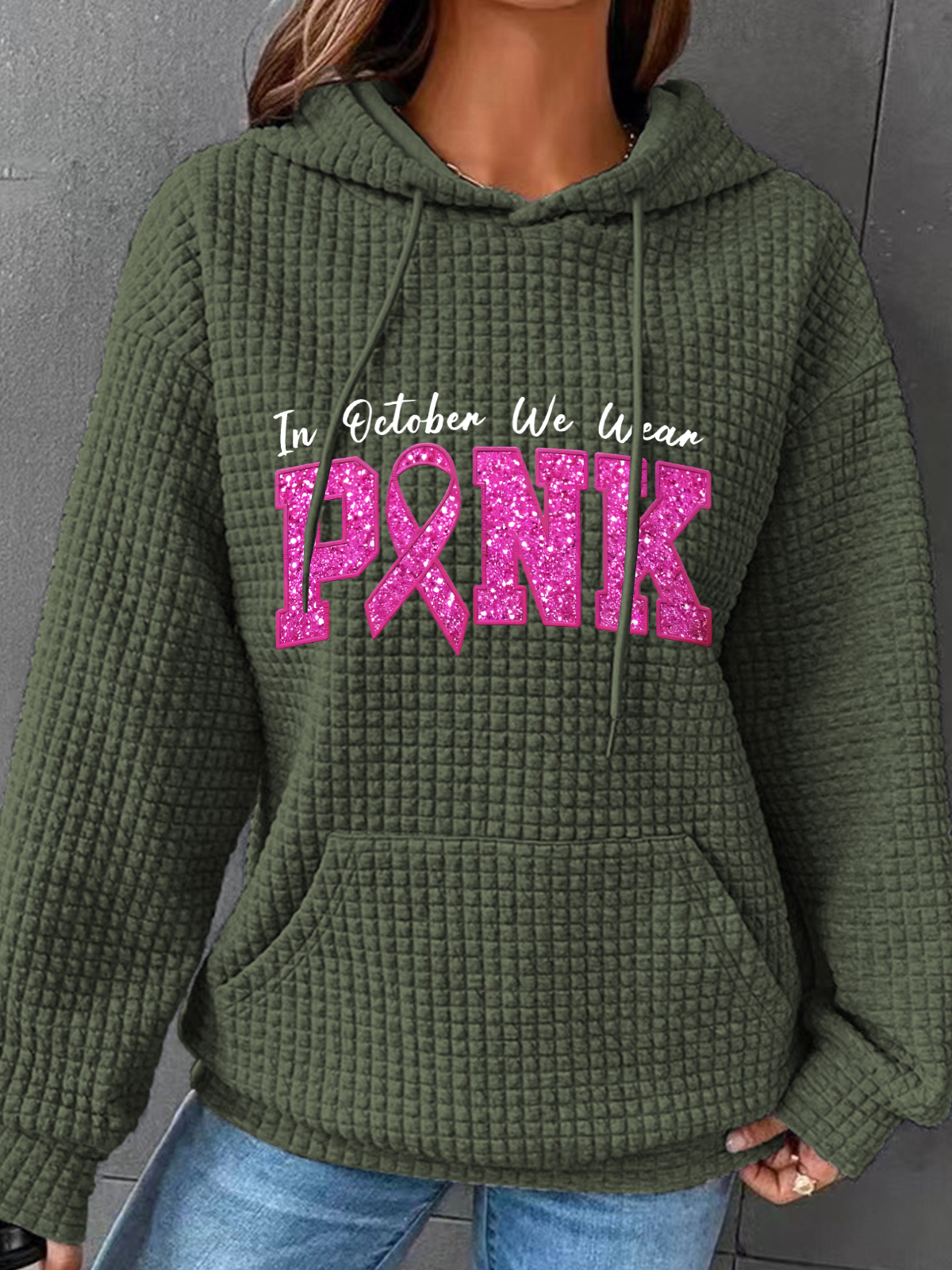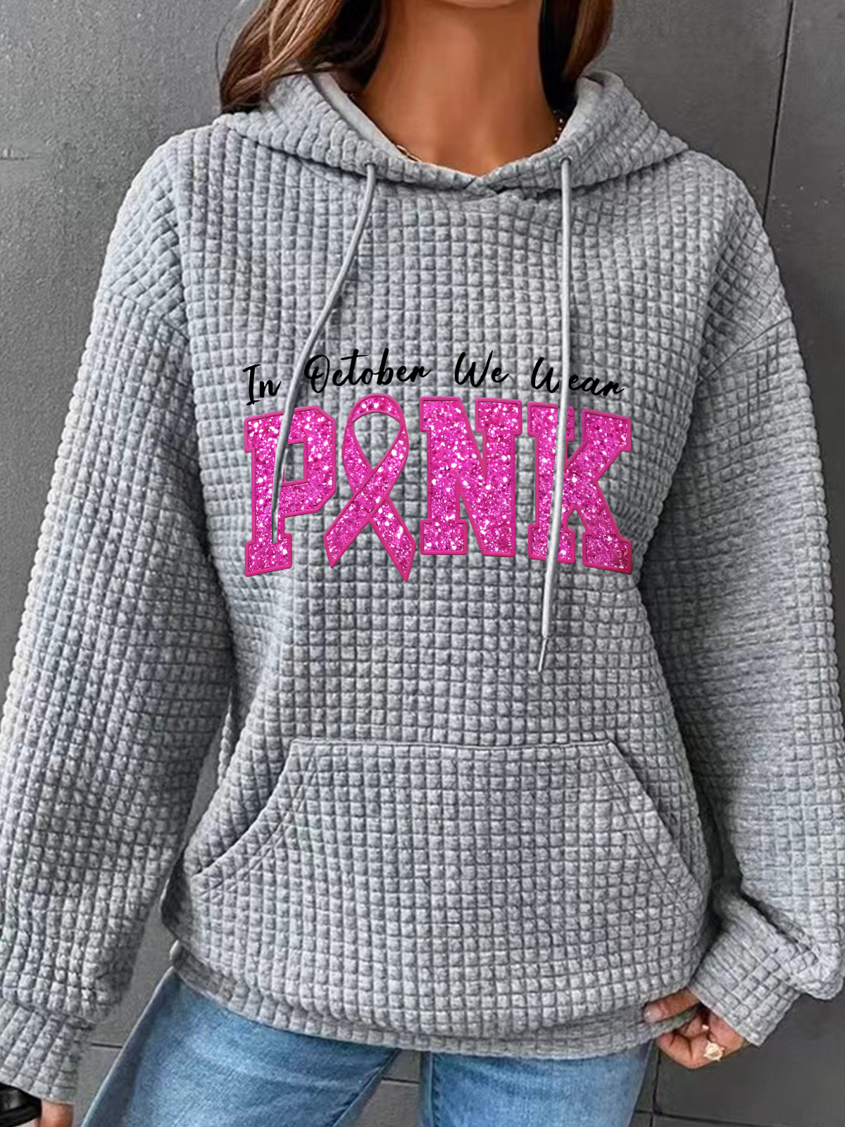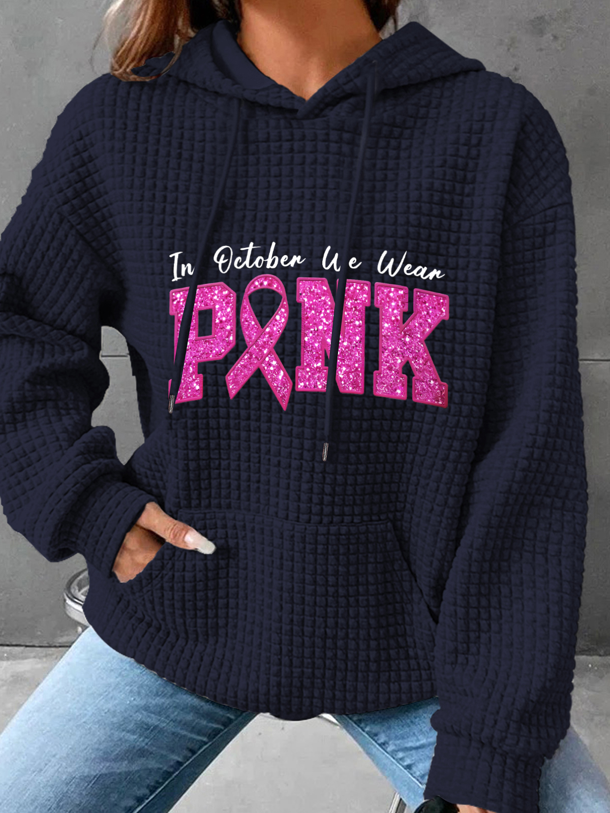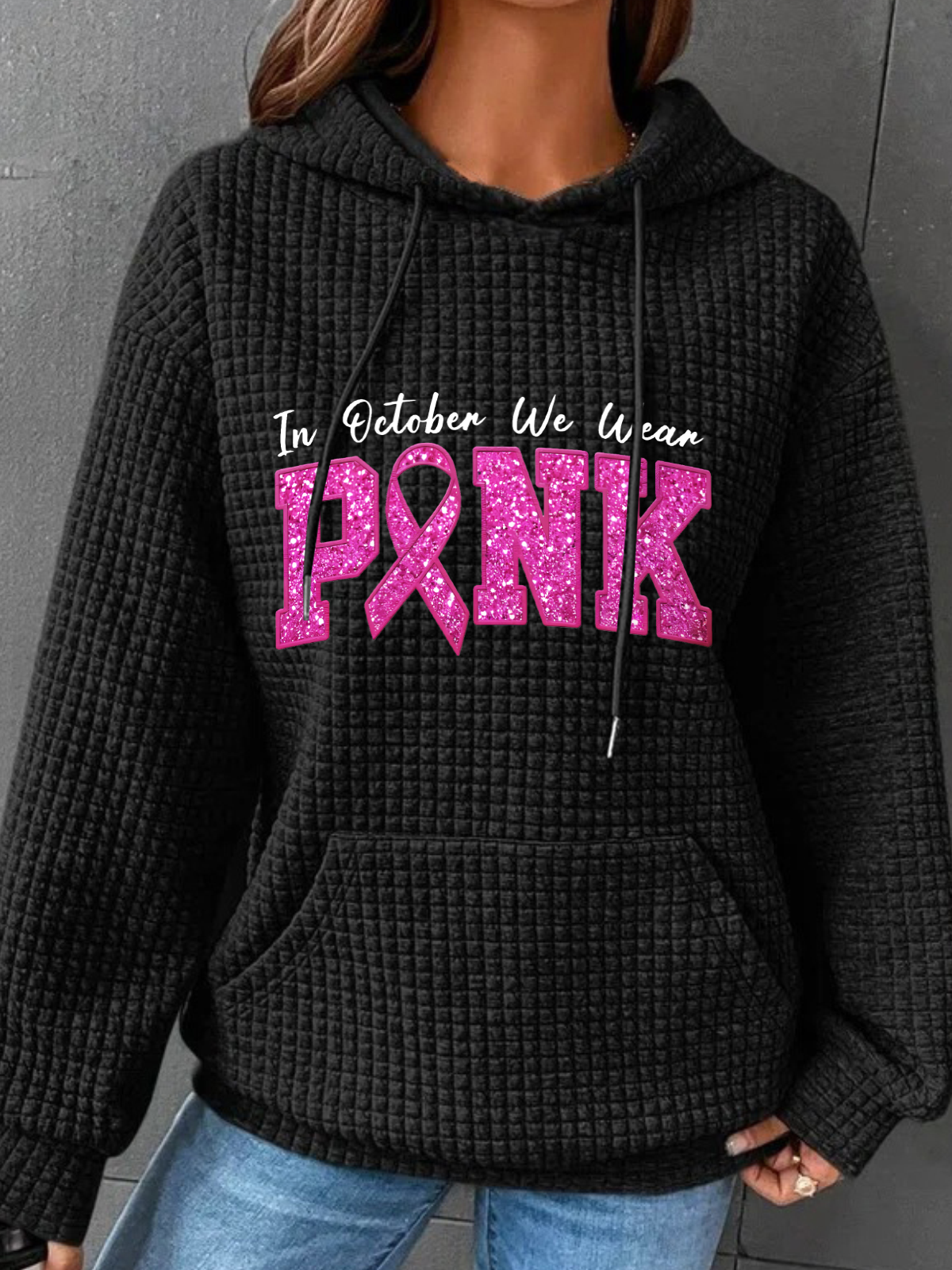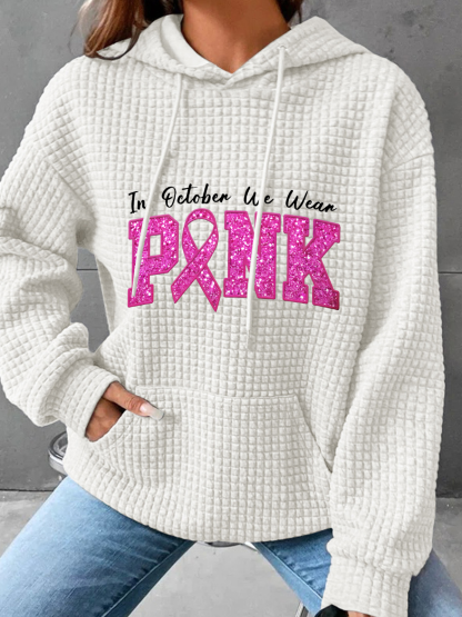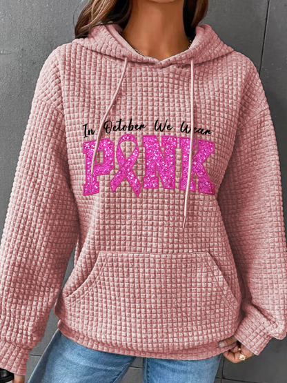 In October We Wear Pink Breast Cancer Awareness Simple Loose Hoodie