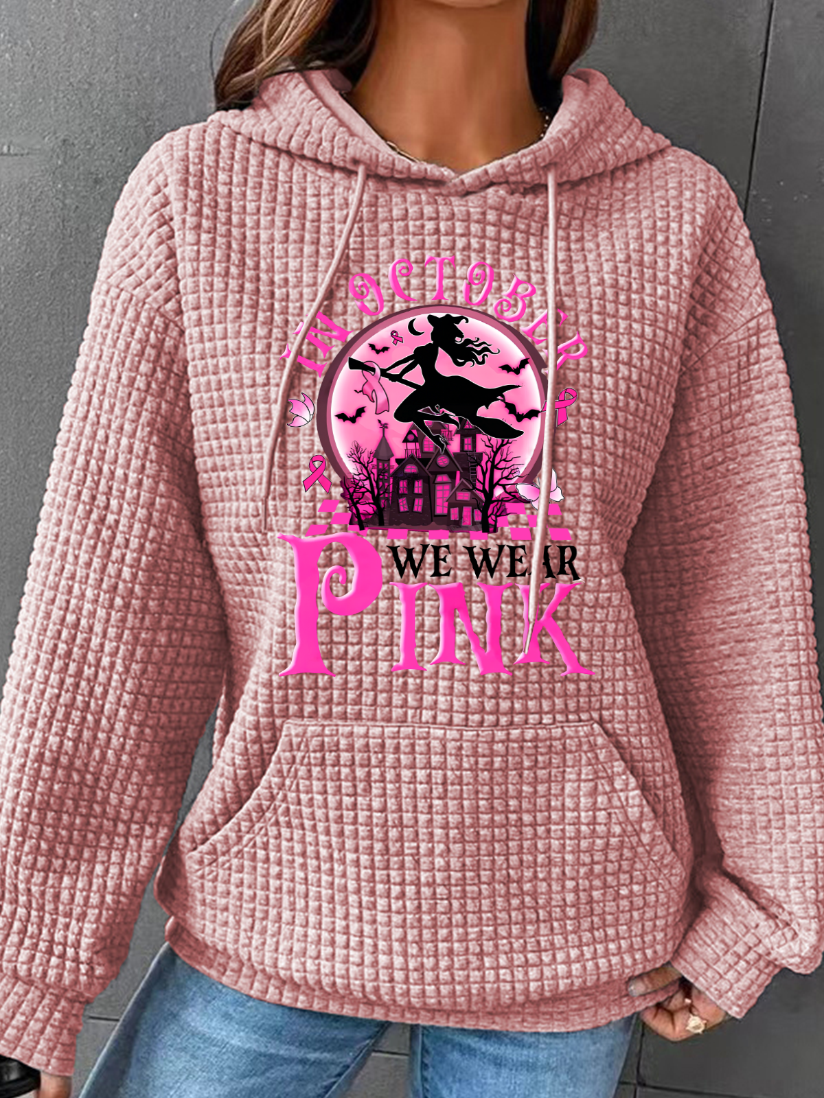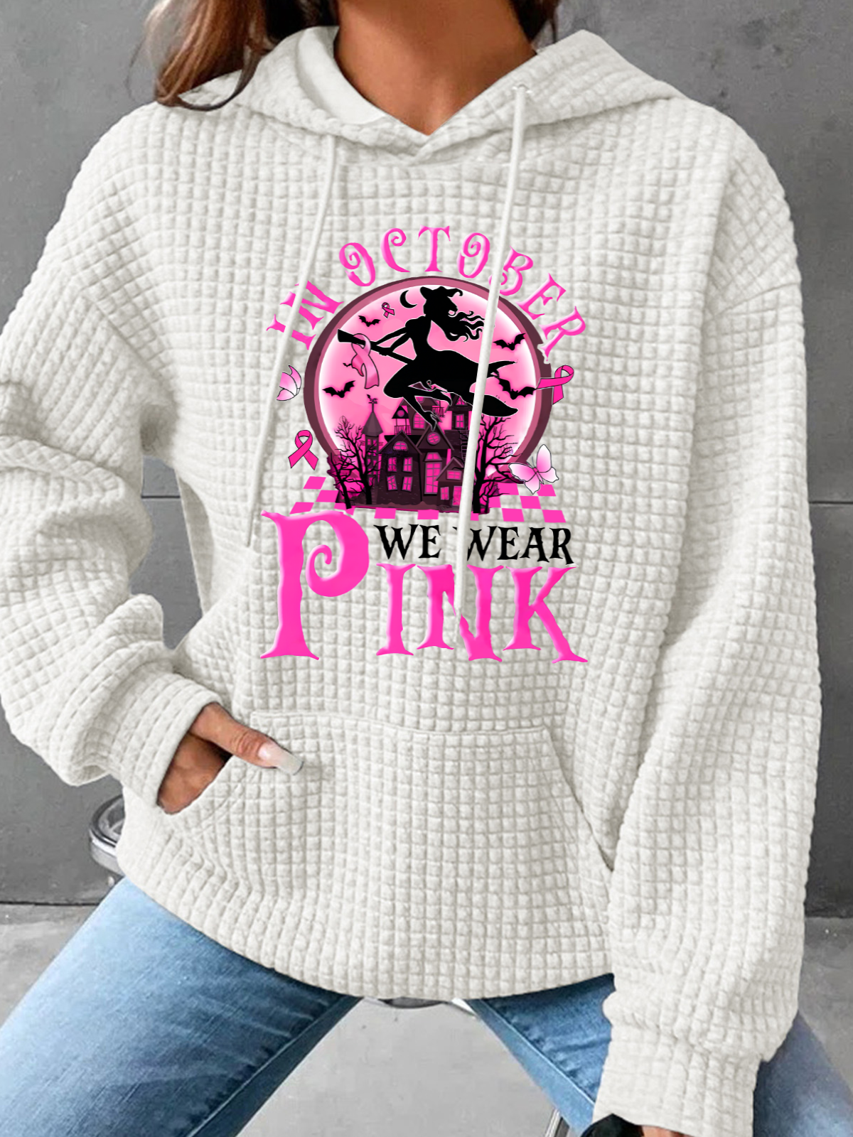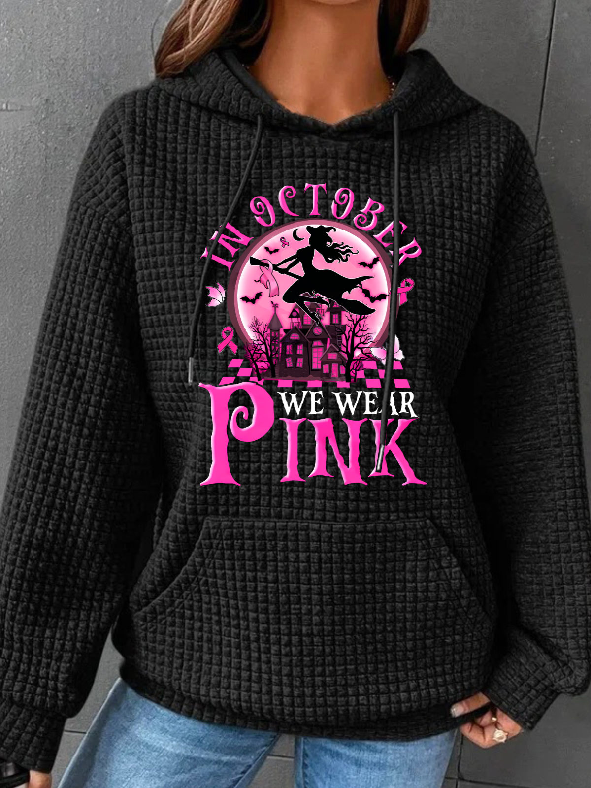 In October We Wear Pink Witch Breast Cancer Simple Loose Hoodie