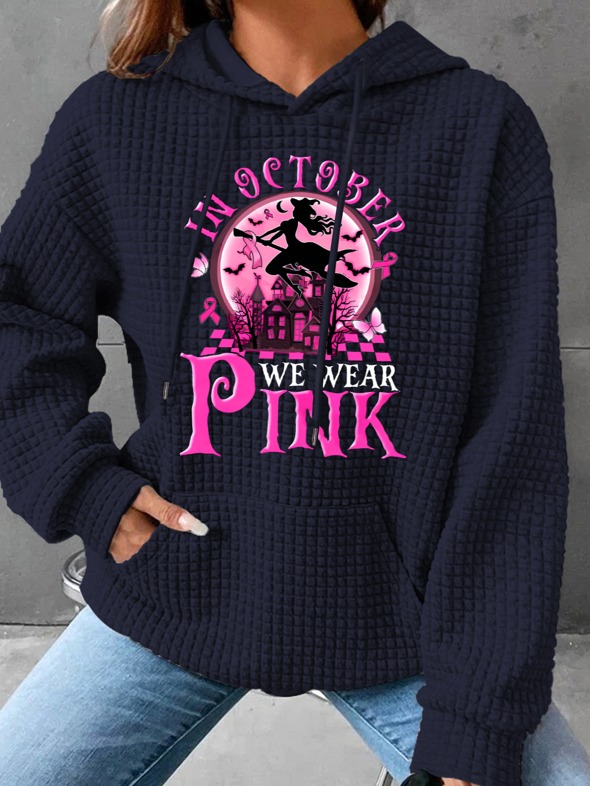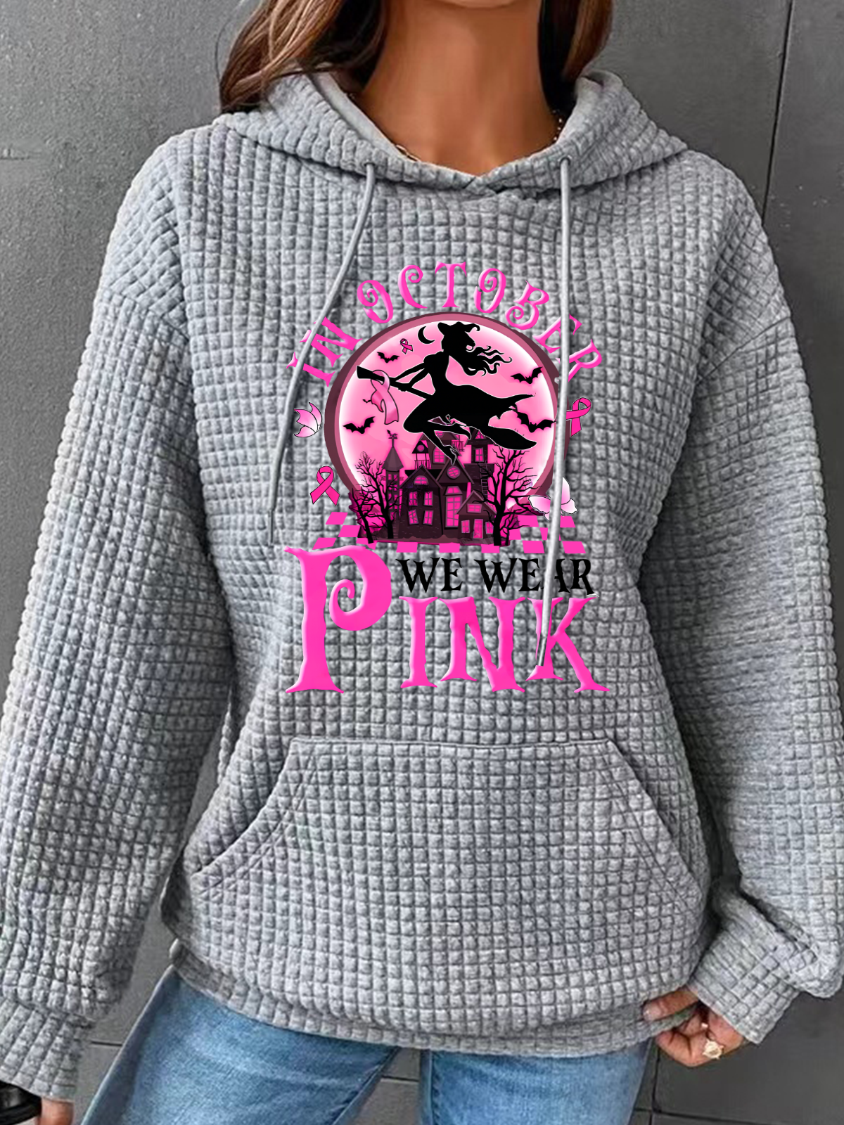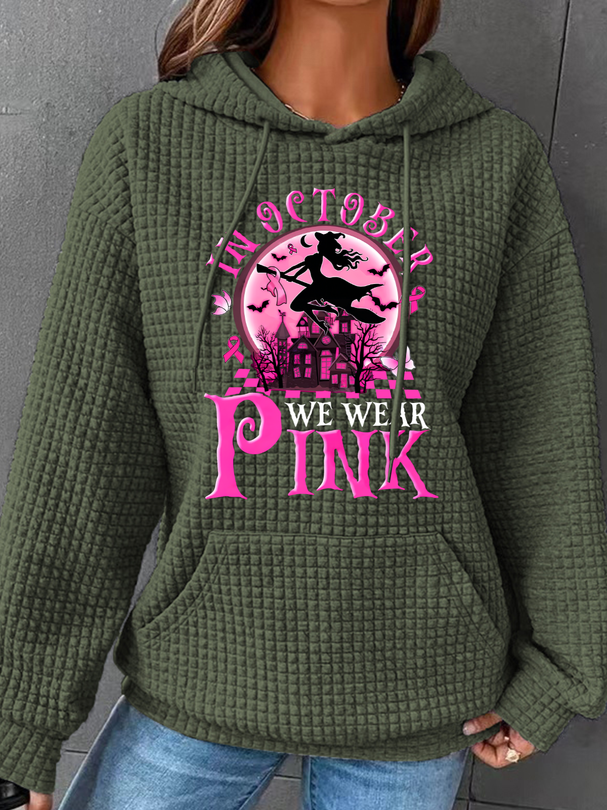 In October We Wear Pink Witch Breast Cancer Simple Loose Hoodie