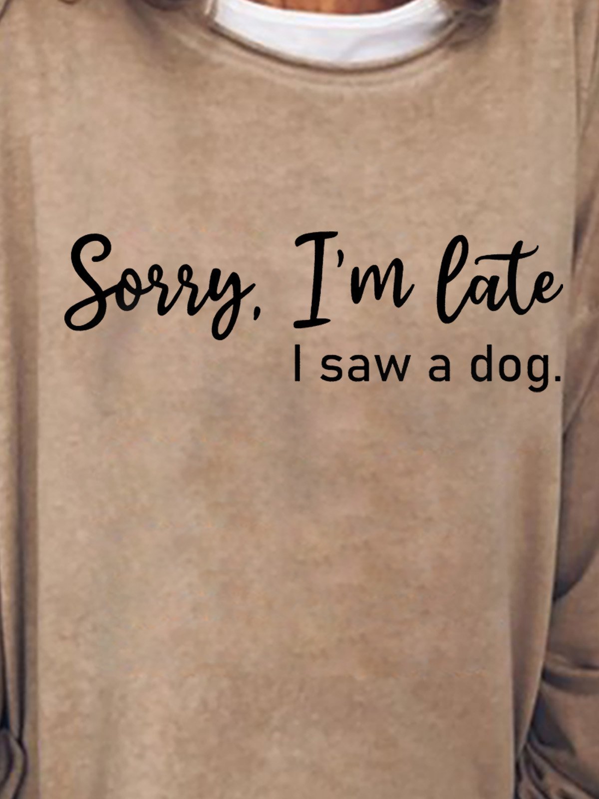 Sorry I'm Late I Saw a Dog Graphic Long Sleeve Sweatshirt