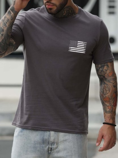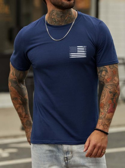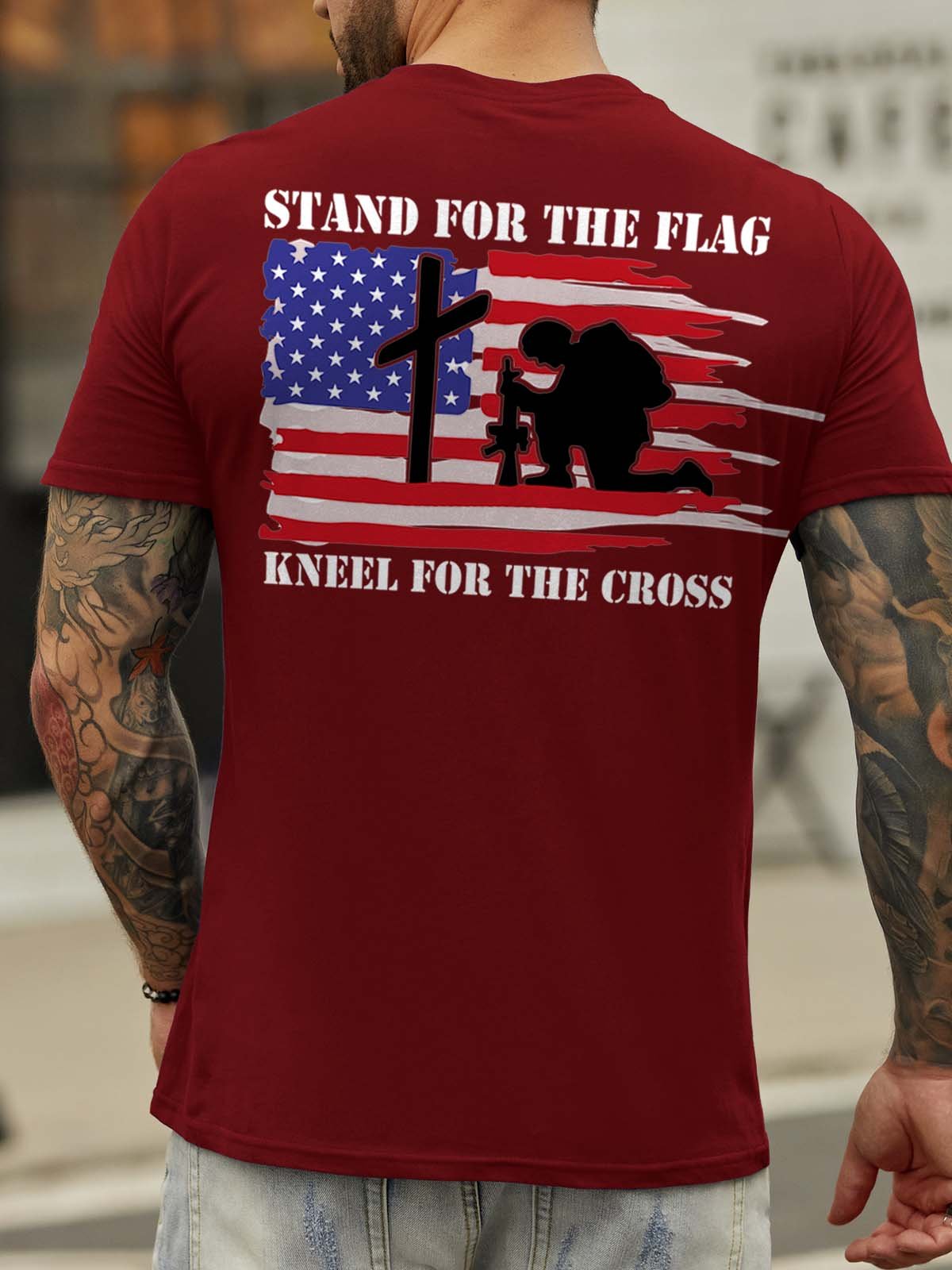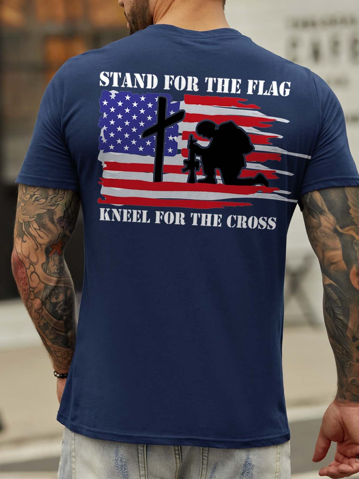 Stand For The Flag Kneel For The Cross Back Print Short Sleeve Cotton Blends Crew Neck T-shirt