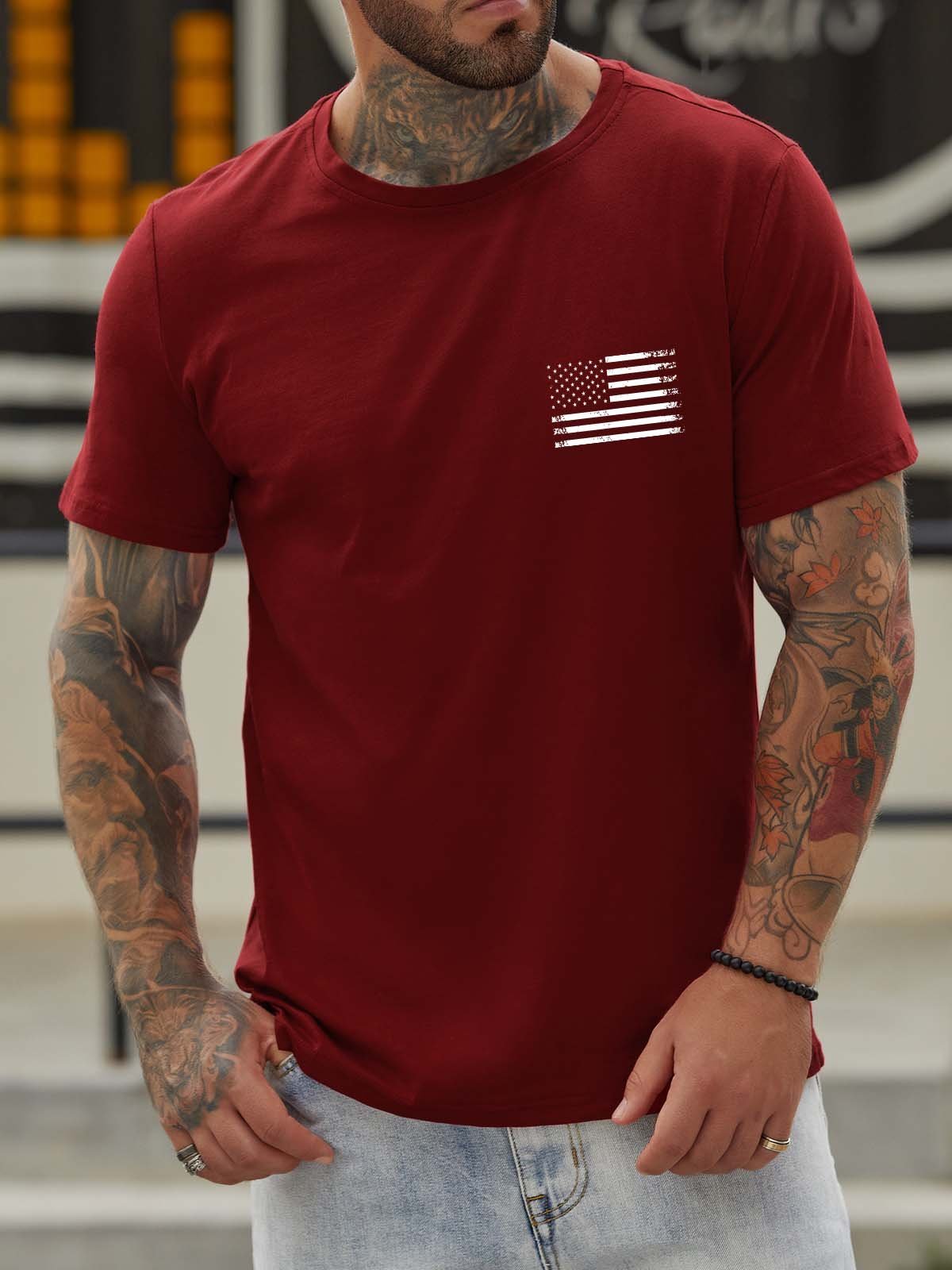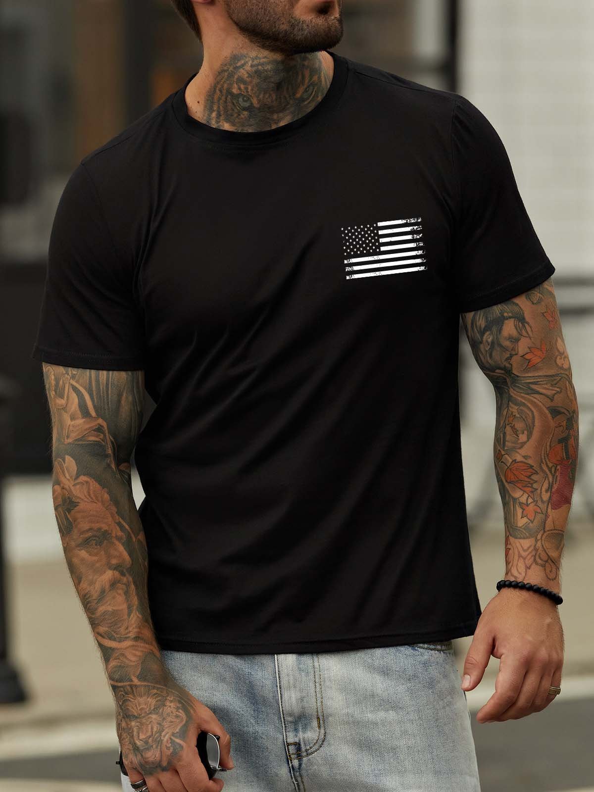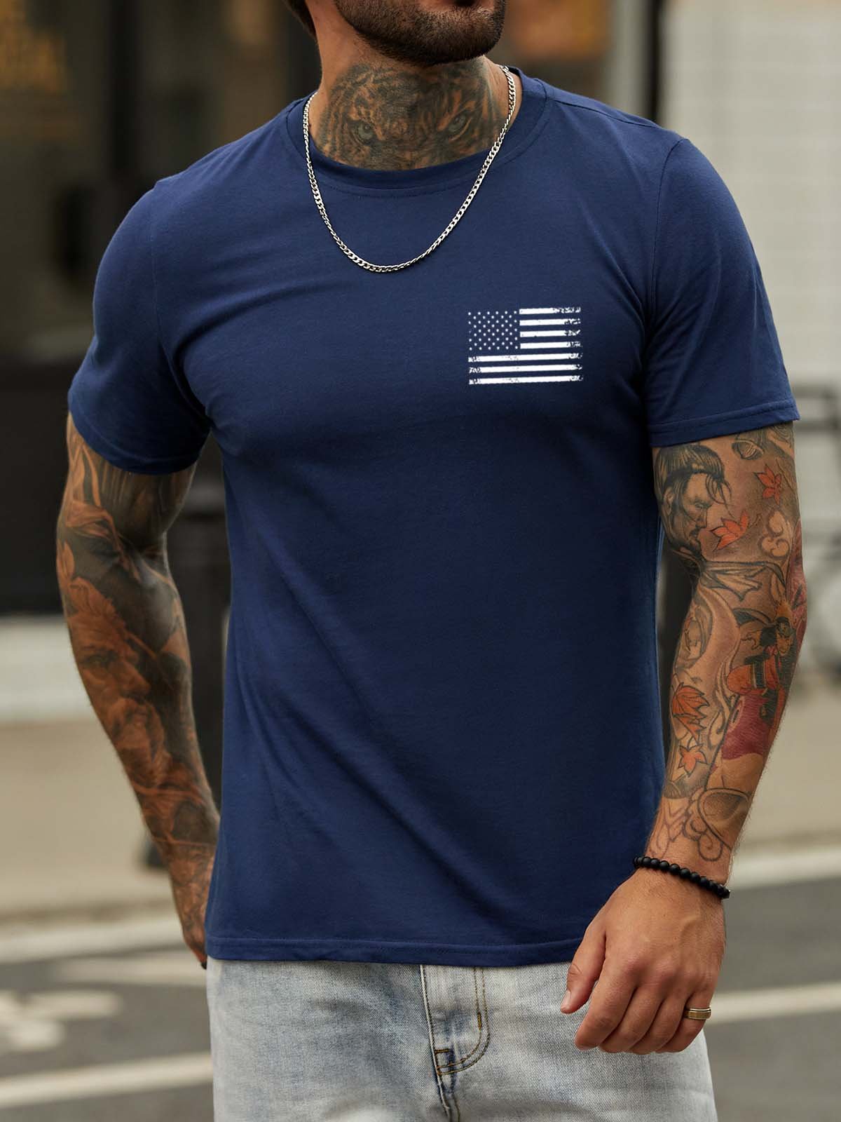 Stand For The Flag Kneel For The Cross Back Print Short Sleeve Cotton Blends Crew Neck T-shirt