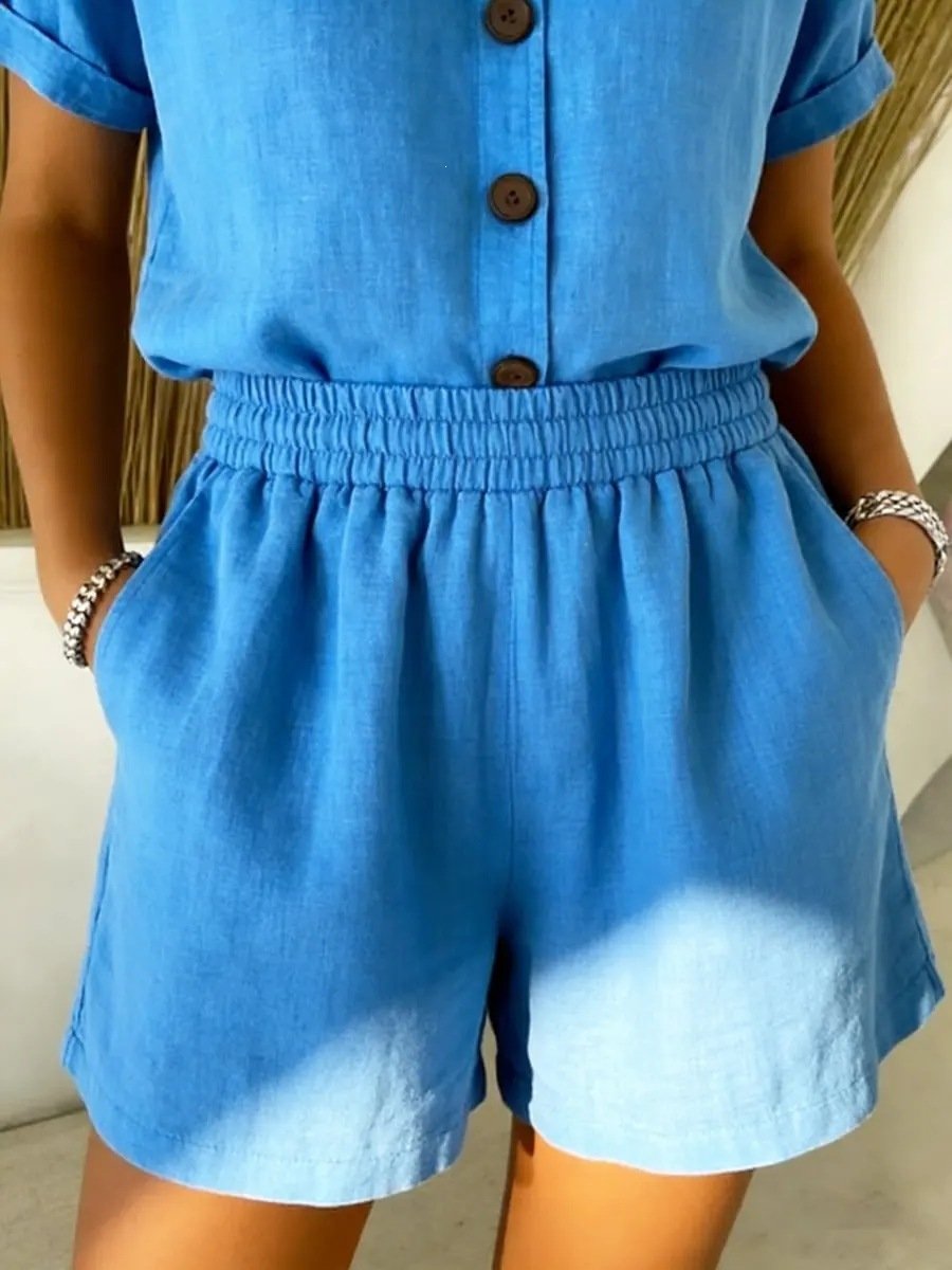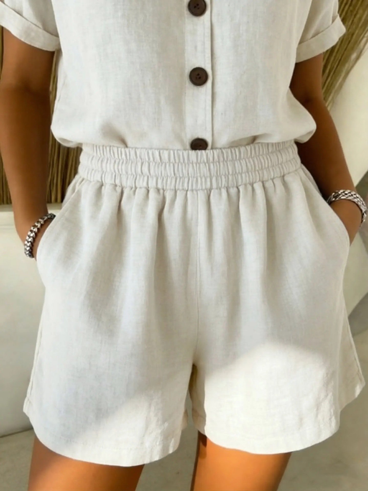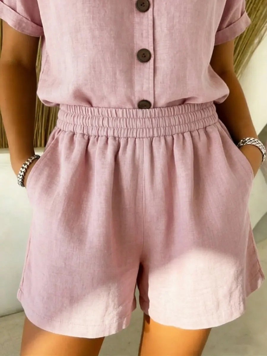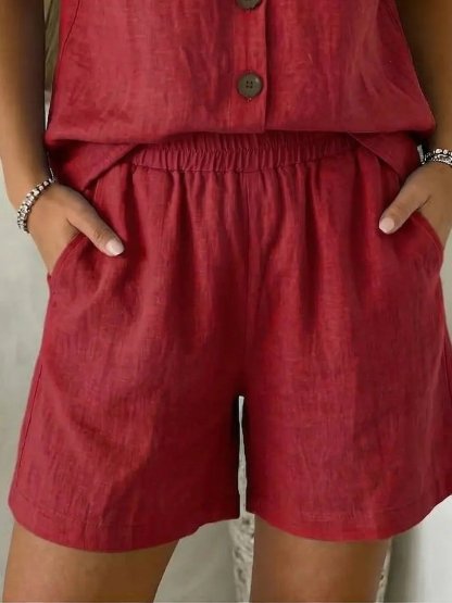 Vintage Plain Linen Blend Shorts