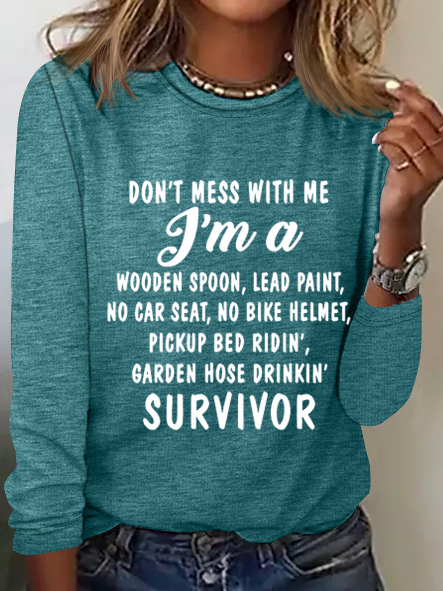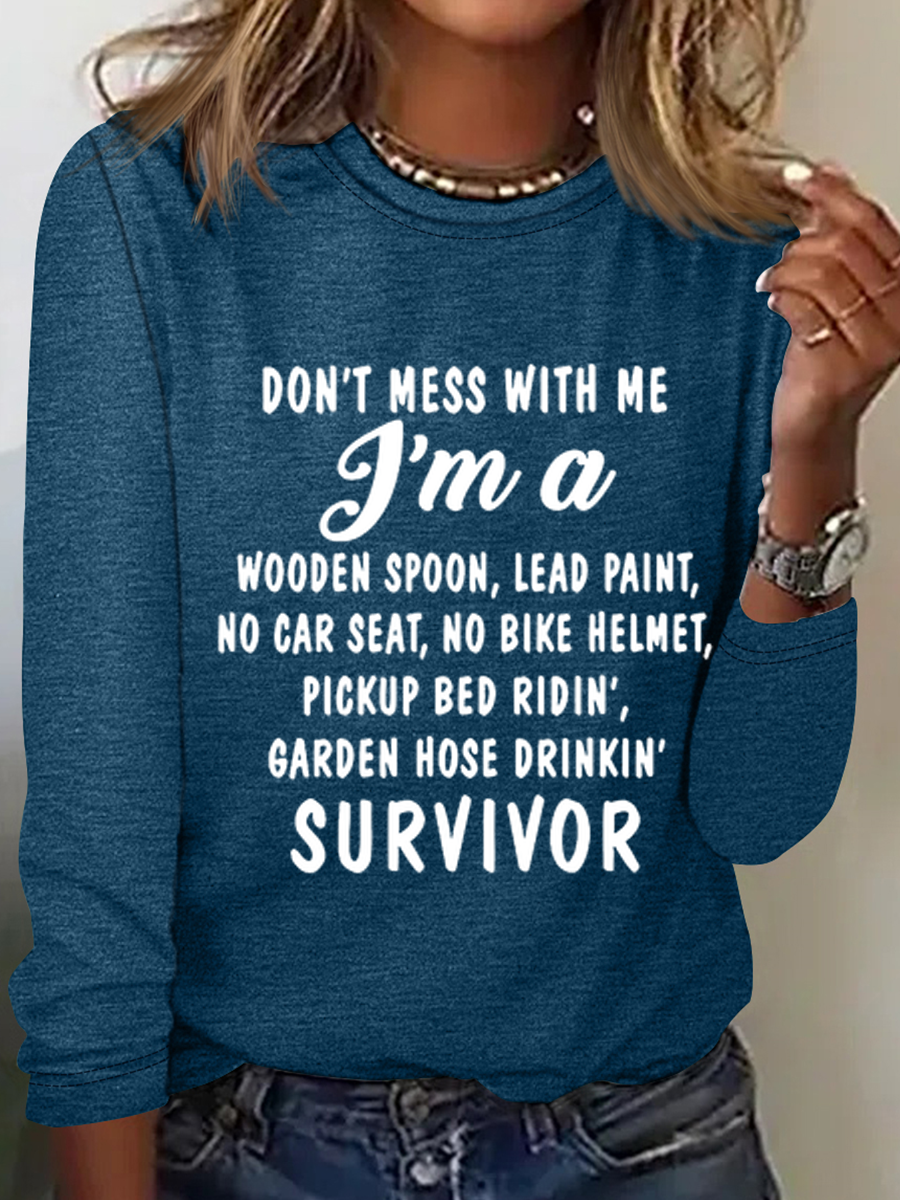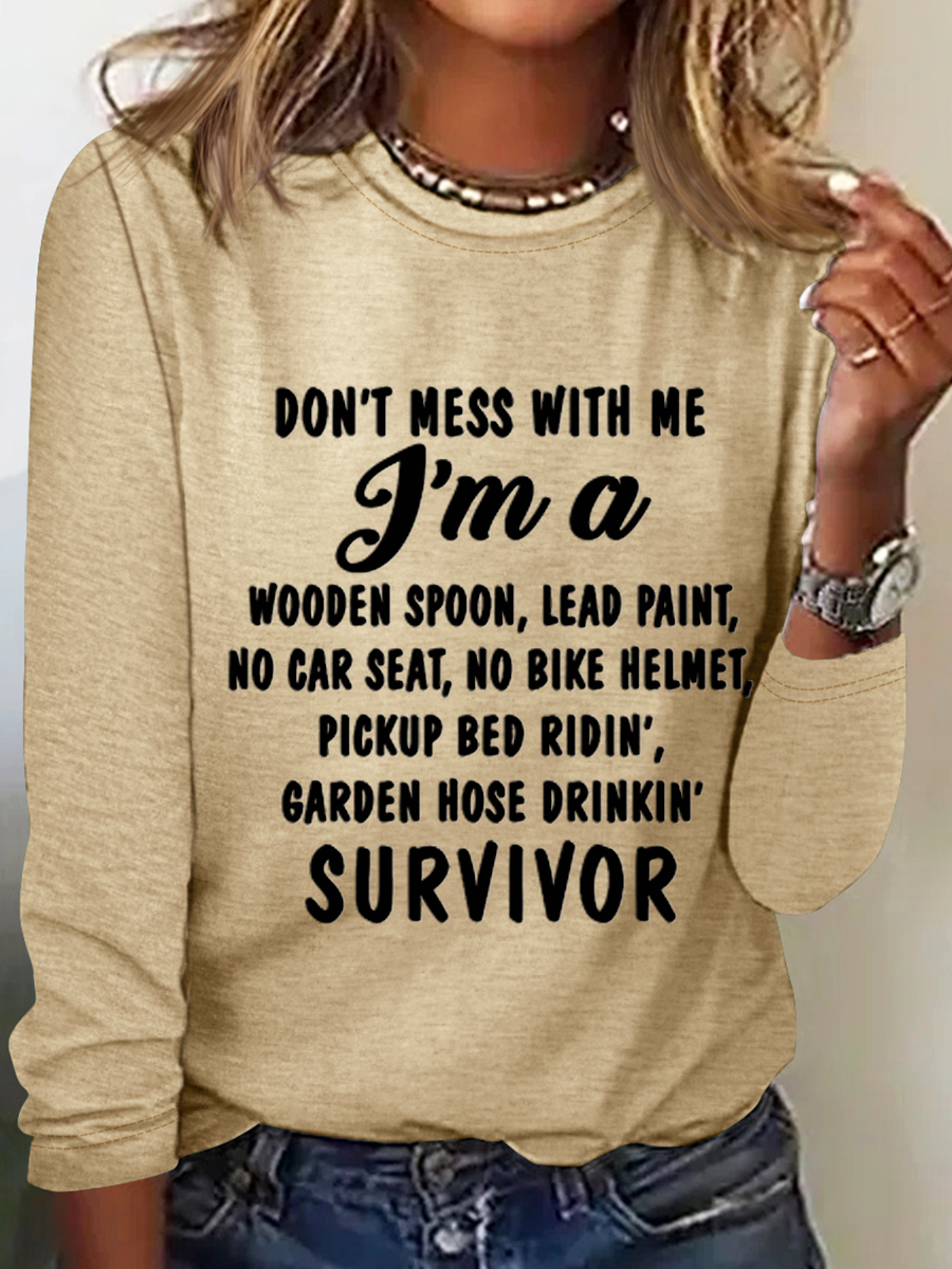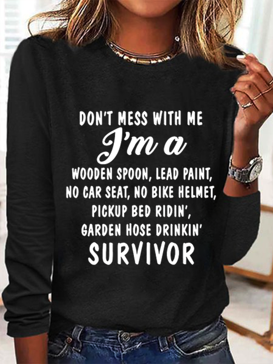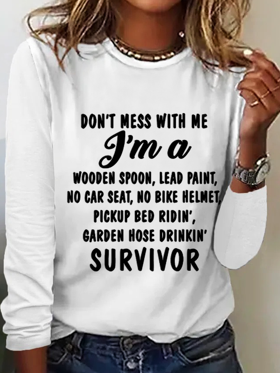 Women's Don't Mess With Me Funny Letter Simple Text Letters Regular Fit Long Sleeve Shirt