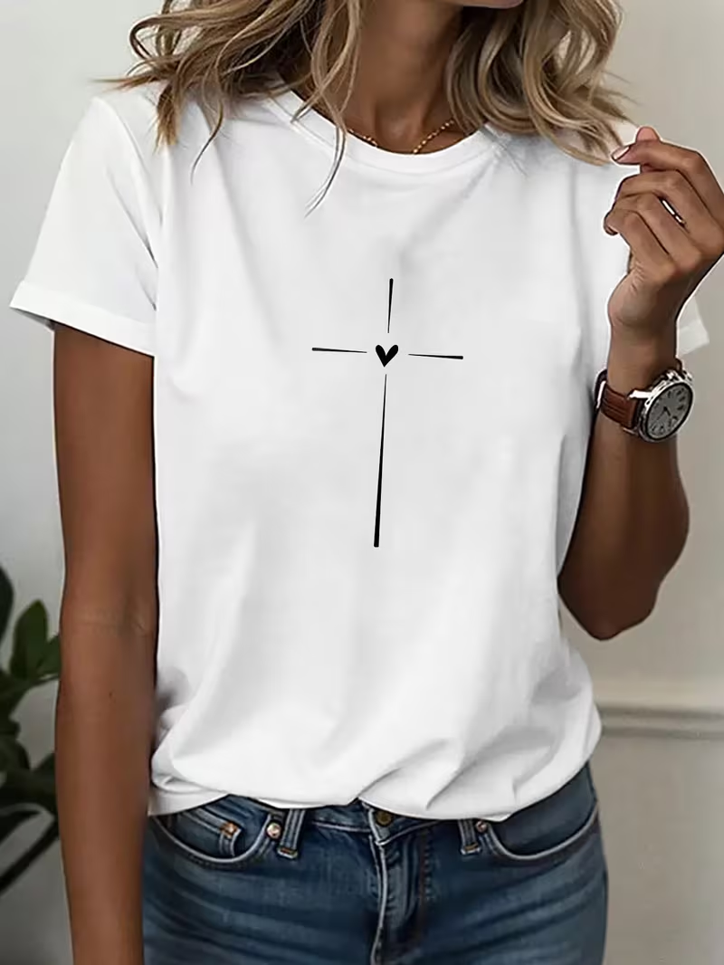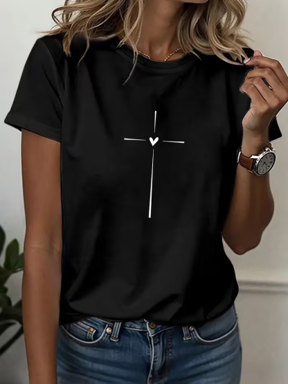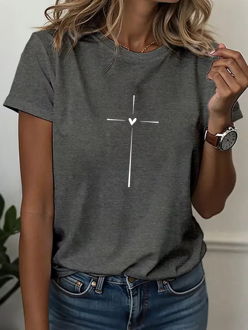 Women's Short Sleeve T-shirt Summer Gray Heart/Cordate Printing Jersey Crew Neck Daily Going Out Casual Top