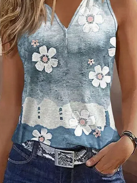 Women's Sleeveless Tank Top Summer As Picture Floral Printing V Neck Daily Going Out Casual Top