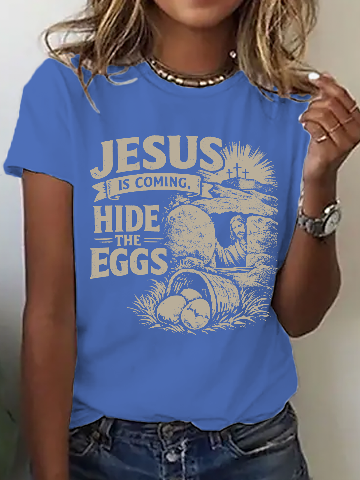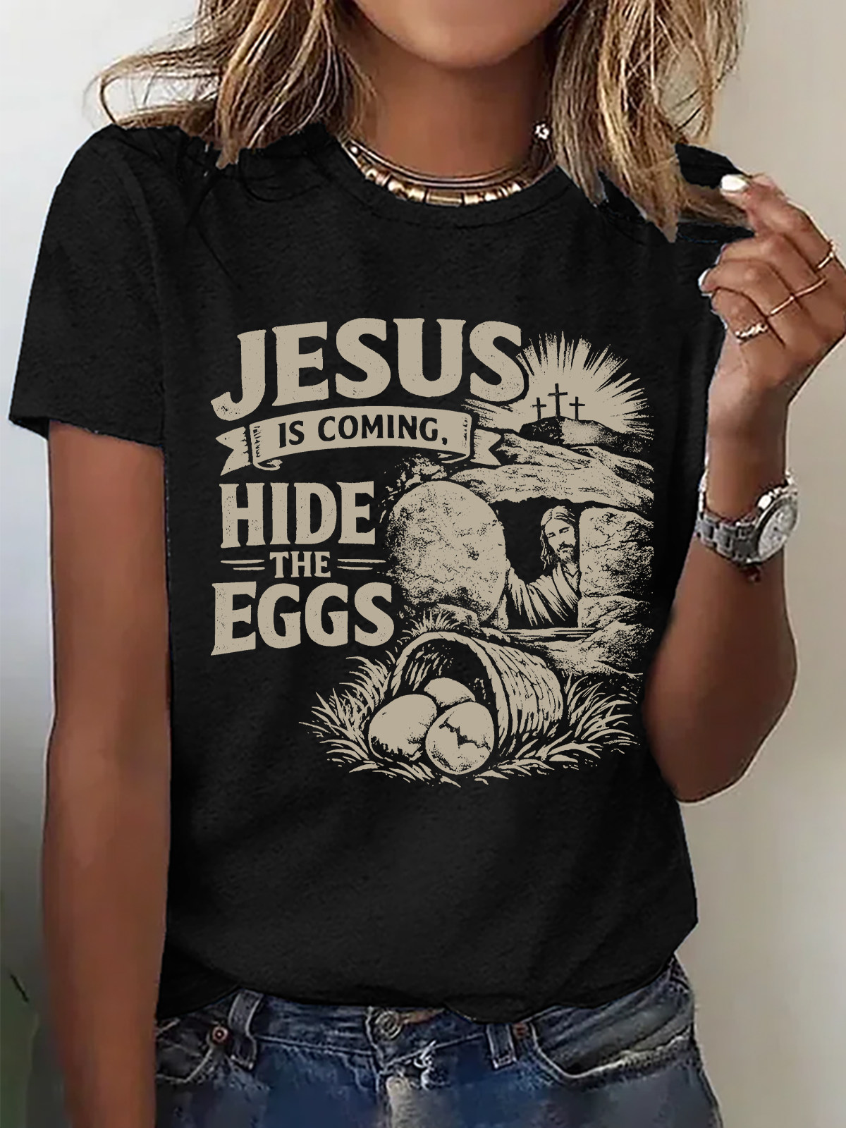 Women's Funny Easter T Shirt Jesus is coming, hide the eggs Adult Humor Easter Shirt