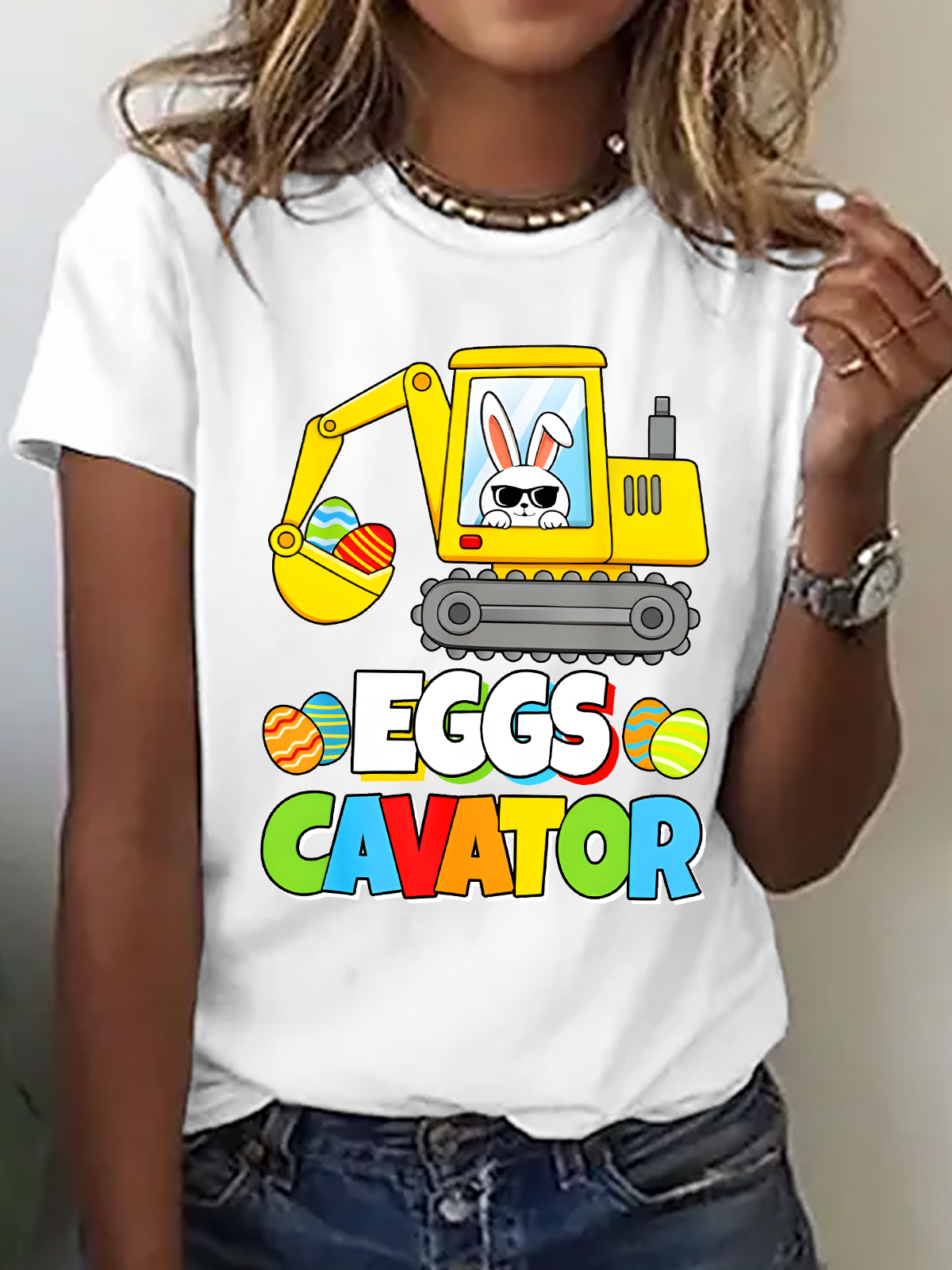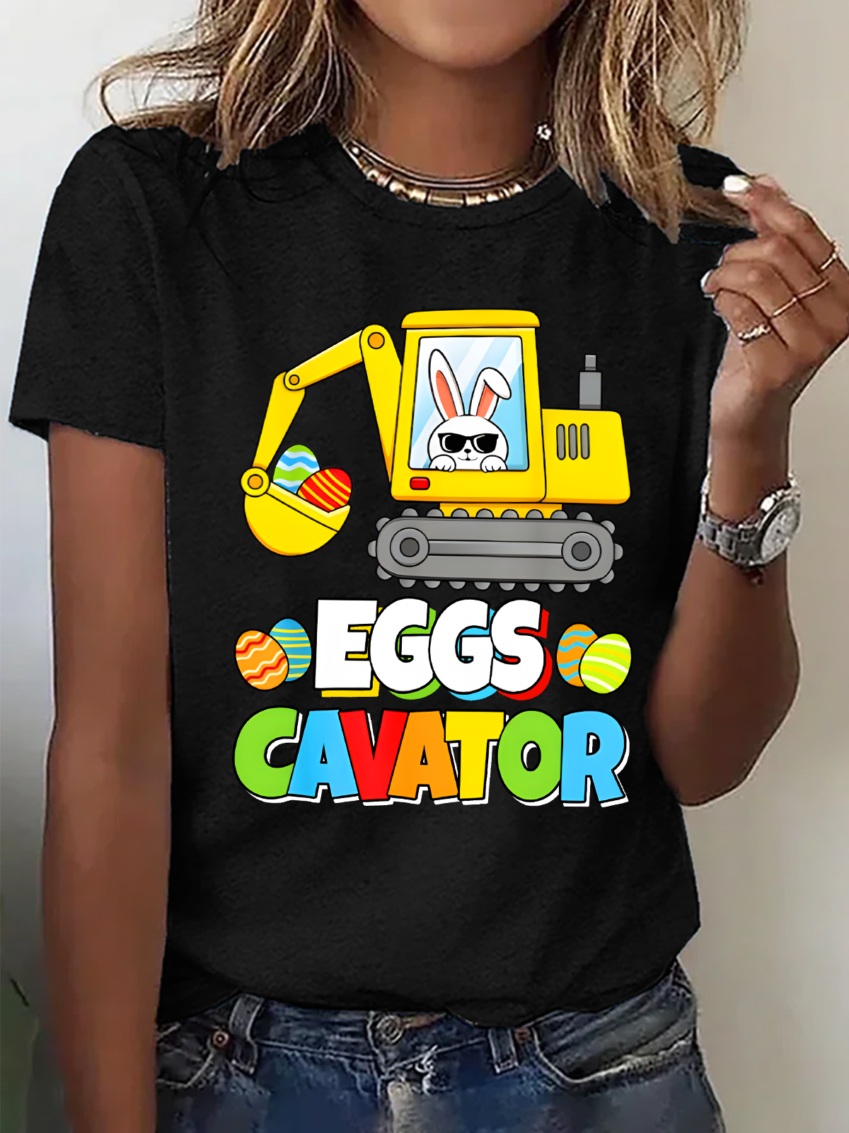 Women's Eggs Cavator Easter Bunny Excavator Funny Rabbit short-sleeved T-shirt