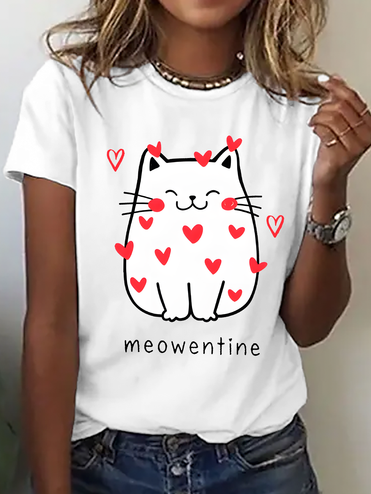 Women's Cute Cat Valentine Short-Sleeved T-shirt