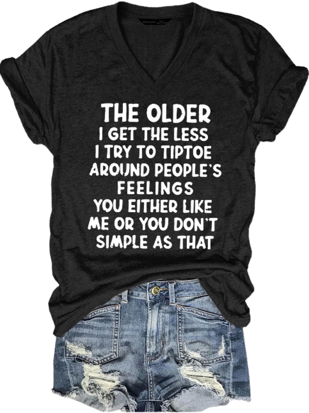 The Older I Get The Less I Try To Tiptoe Around People's Feelings V Neck Letter Short Sleeve T-Shirt