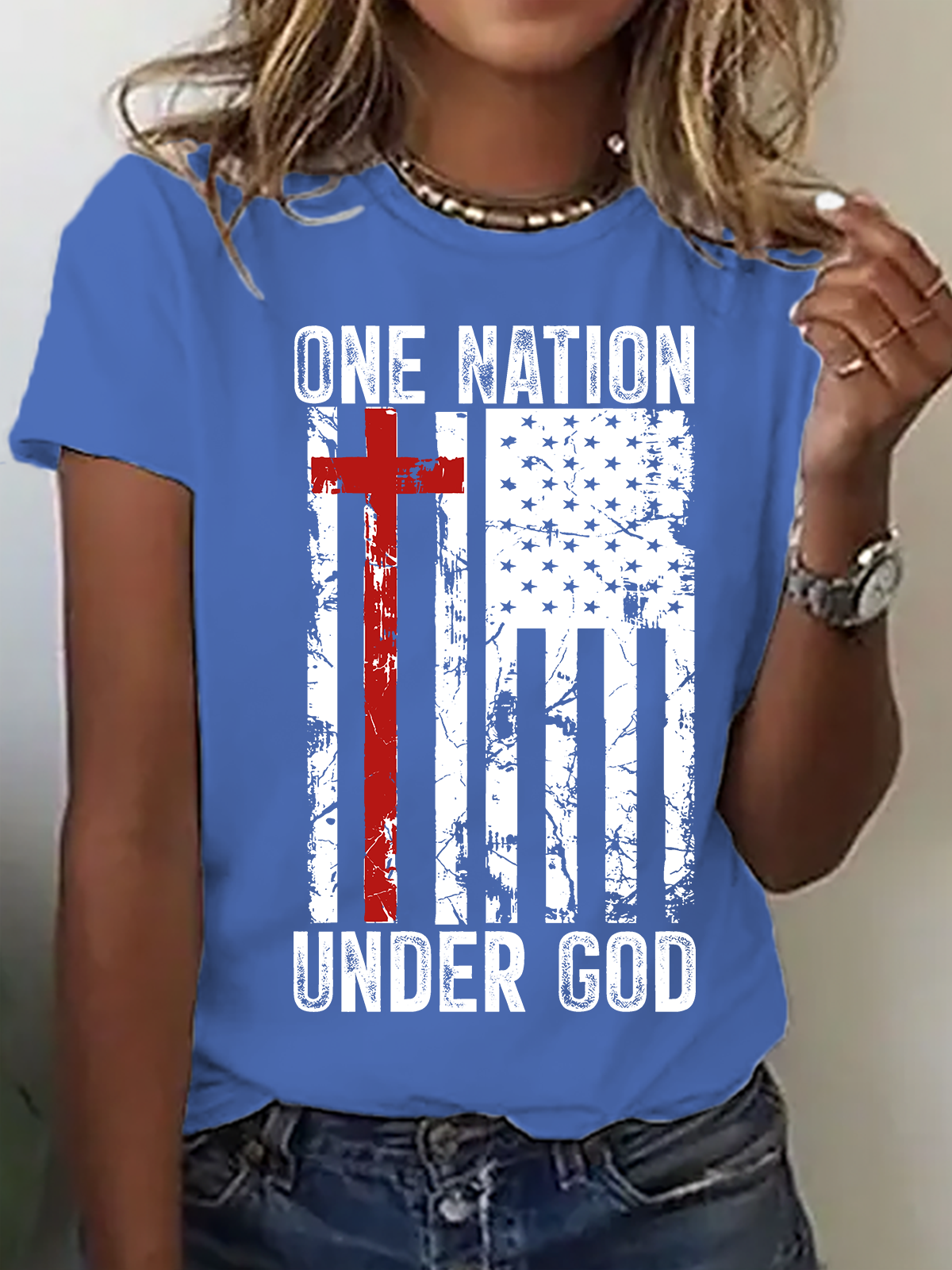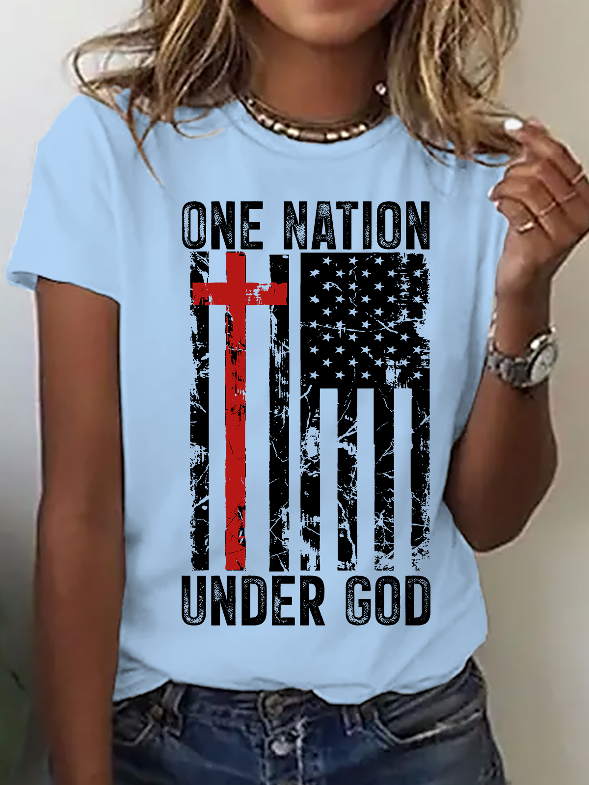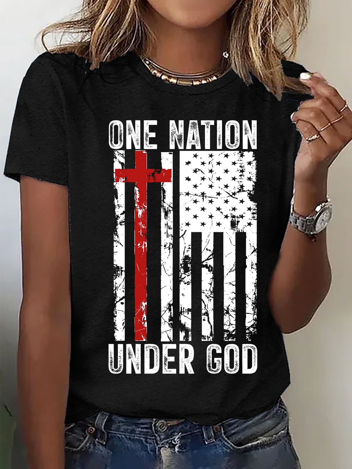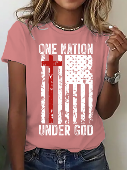 American Flag And Cross Cotton T-Shirt