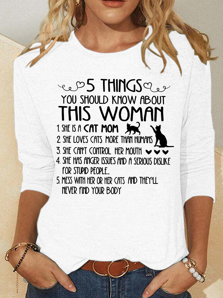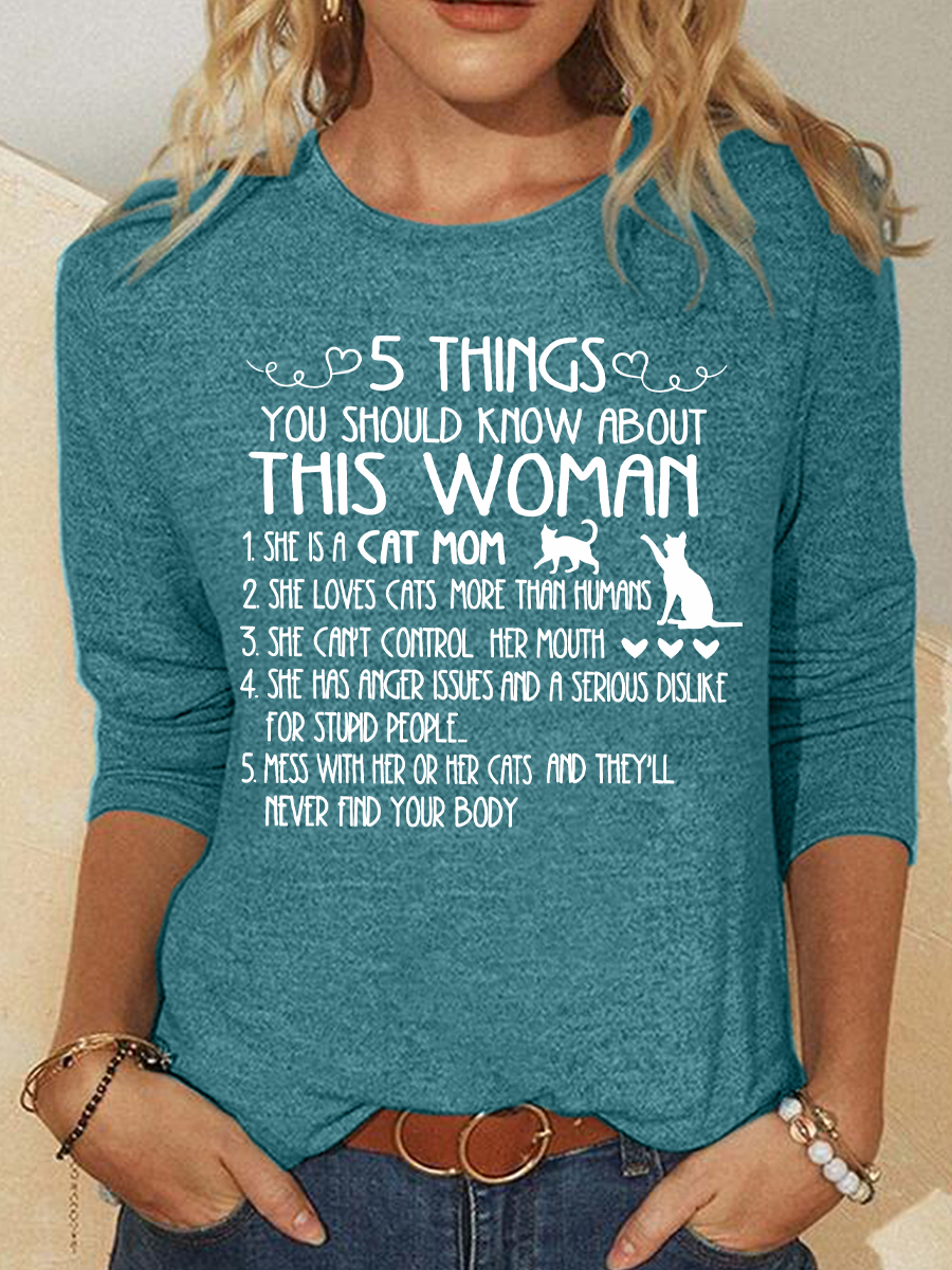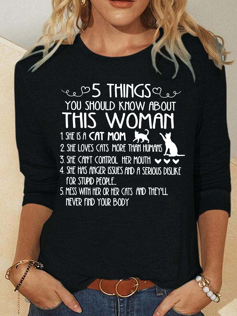Cat Mom Things Woman Classic T-Shirt Casual Long Sleeve Shirt
